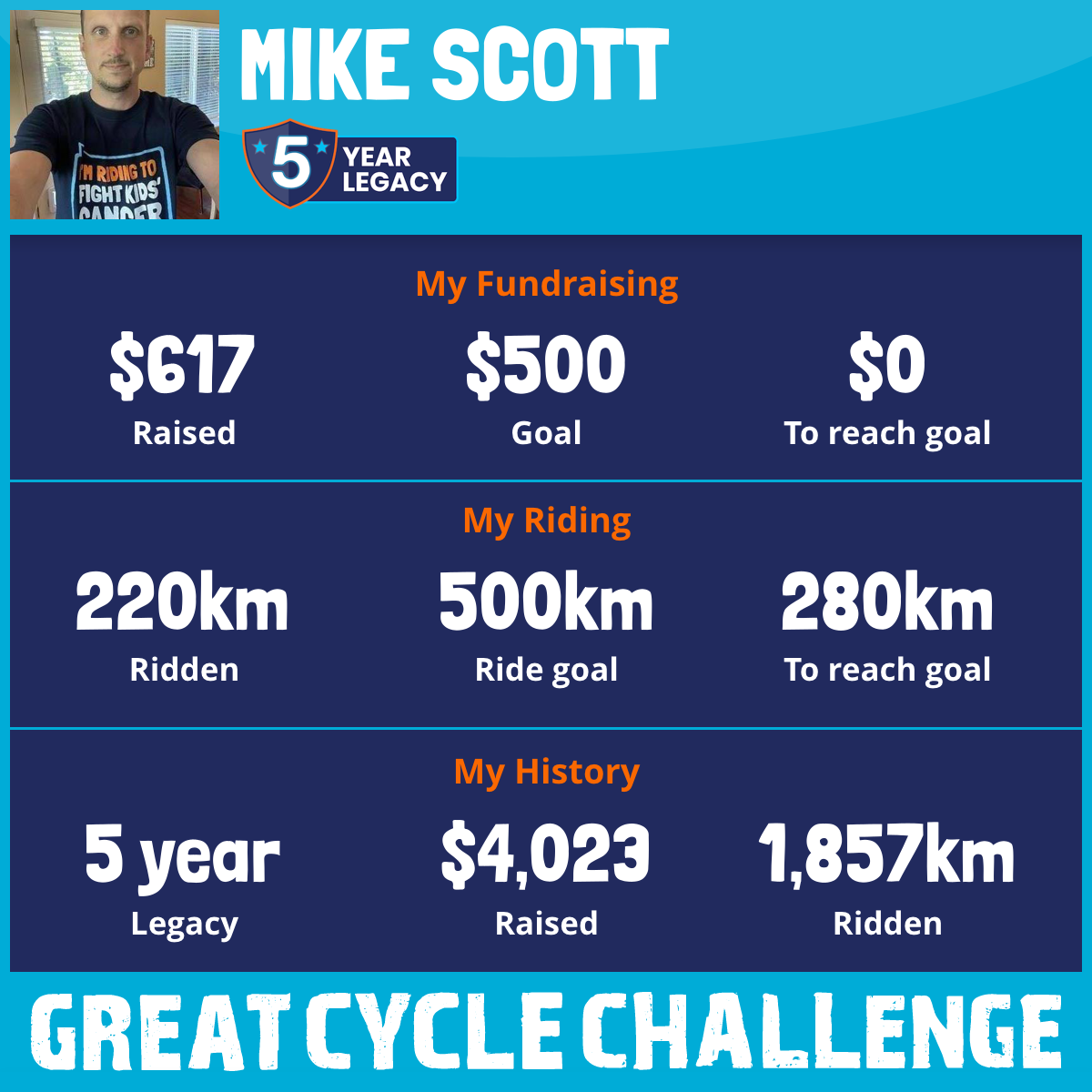 19 Aug 2025Celebrating 5 years of doing this cycle challenge and just received my jersey. Over $4000 raised and almost 2000km over the last 5 years! I’m aiming to finish strong with a 100km bike ride with my friend Elijah 🚴