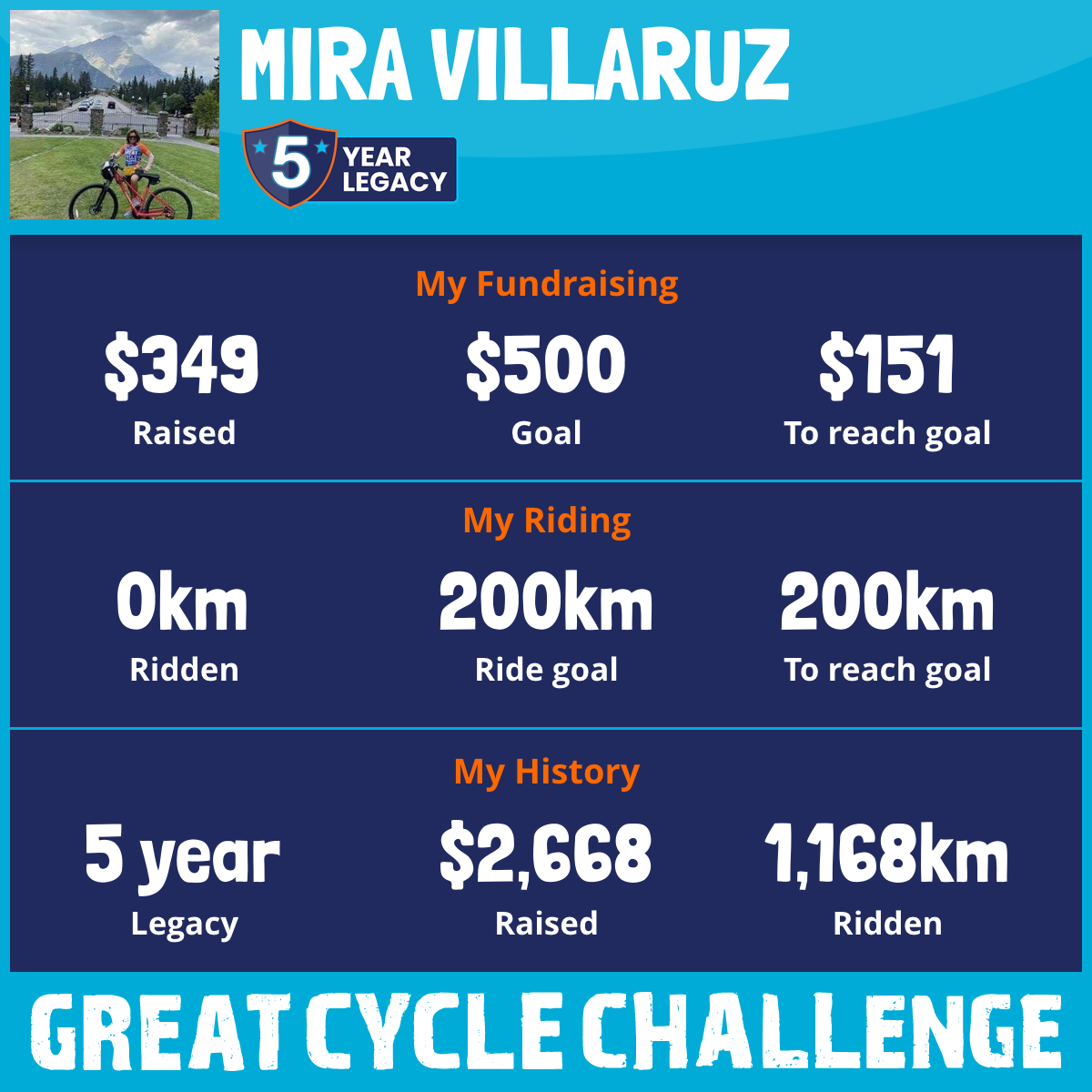 201 km Ridden$763 Raised2026