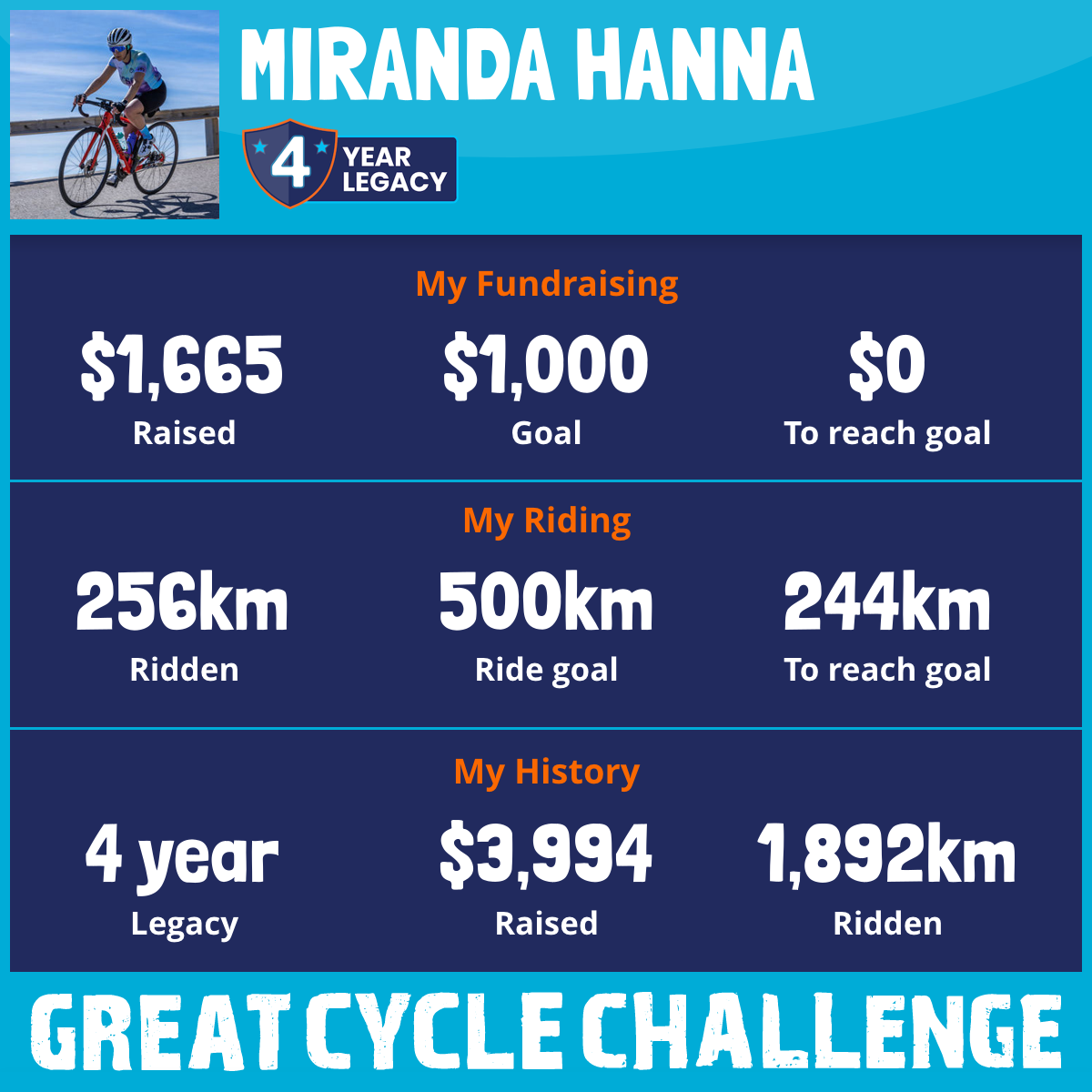This August, I am taking part in the Great Cycle Challenge to fight kid's cancer. I don't think there's many who have not been impacted by cancer, whether it's a child or adult, mother, brother, friend, and on and on.
