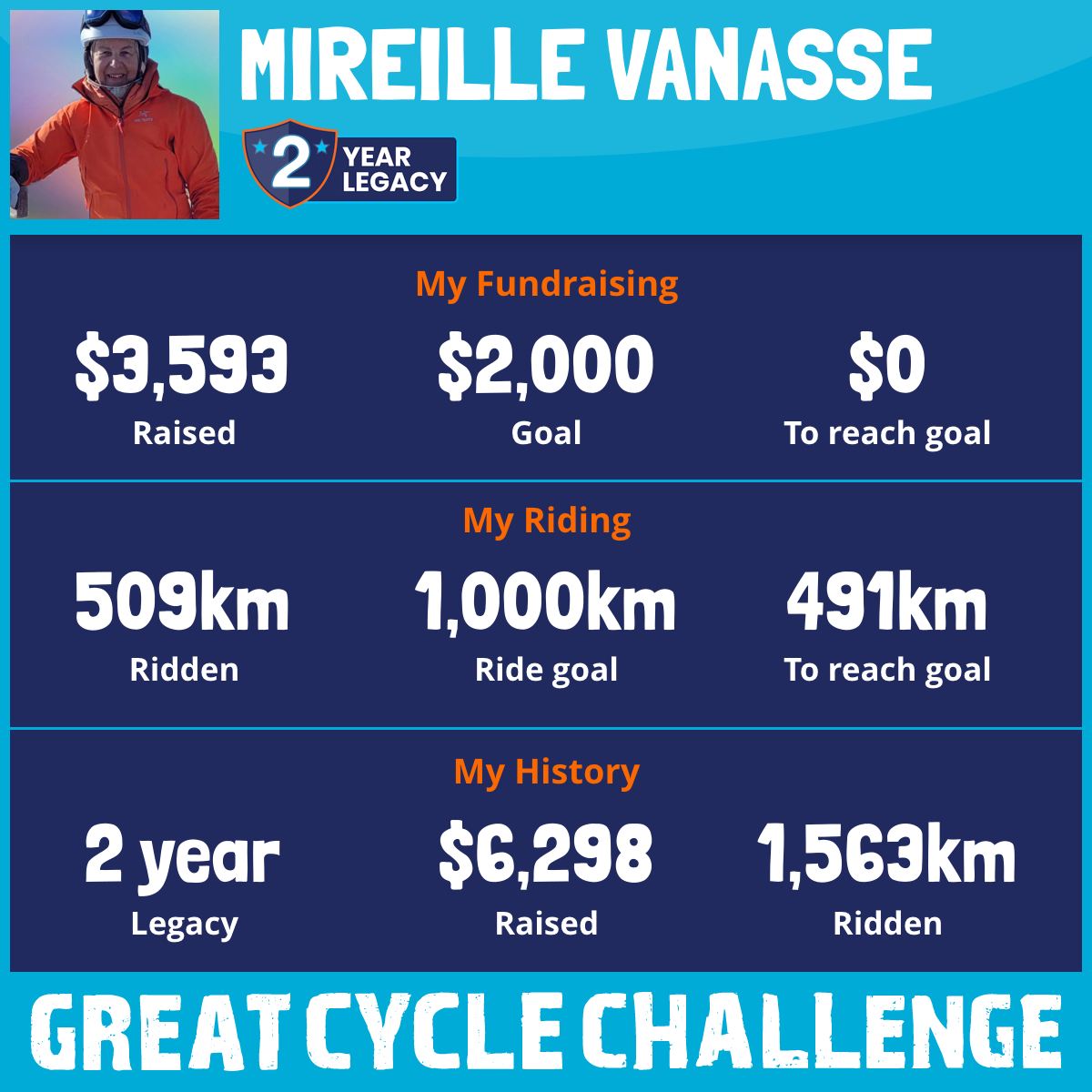 1,001 km Ridden$3,628 Raised2026
