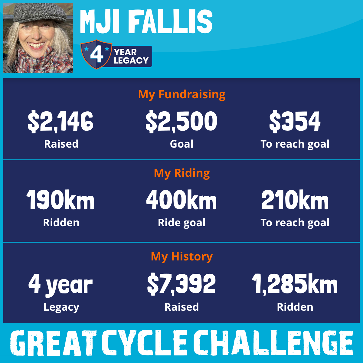 223 km Ridden$598 Raised2023