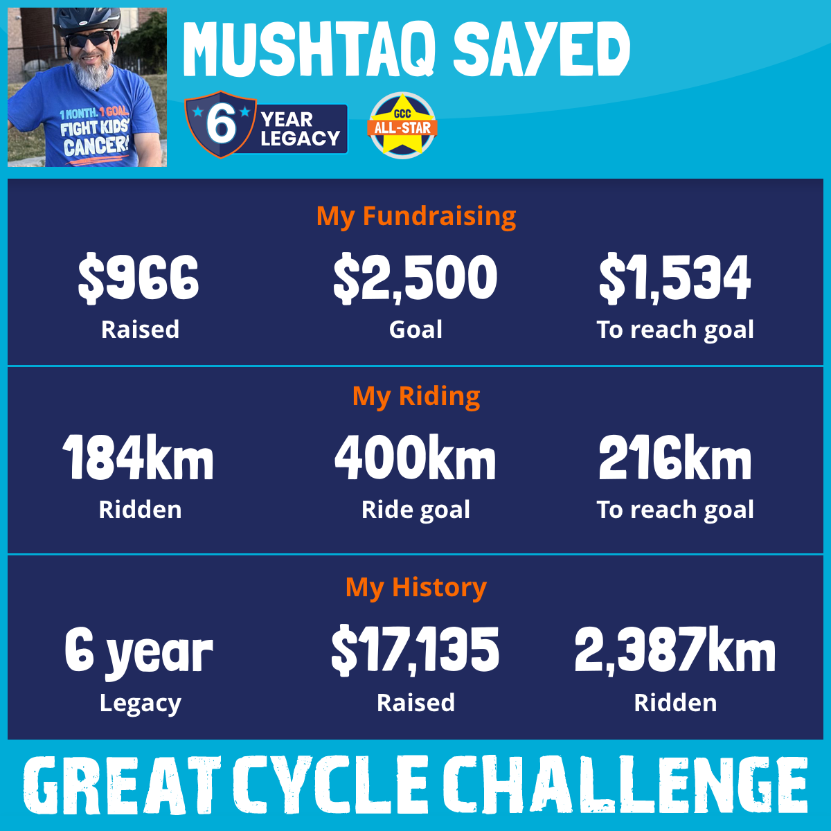 I am riding 400 km for Nafisa Sayed. Please sponsor me and support my challenge to fight kids' cancer and save little lives.
