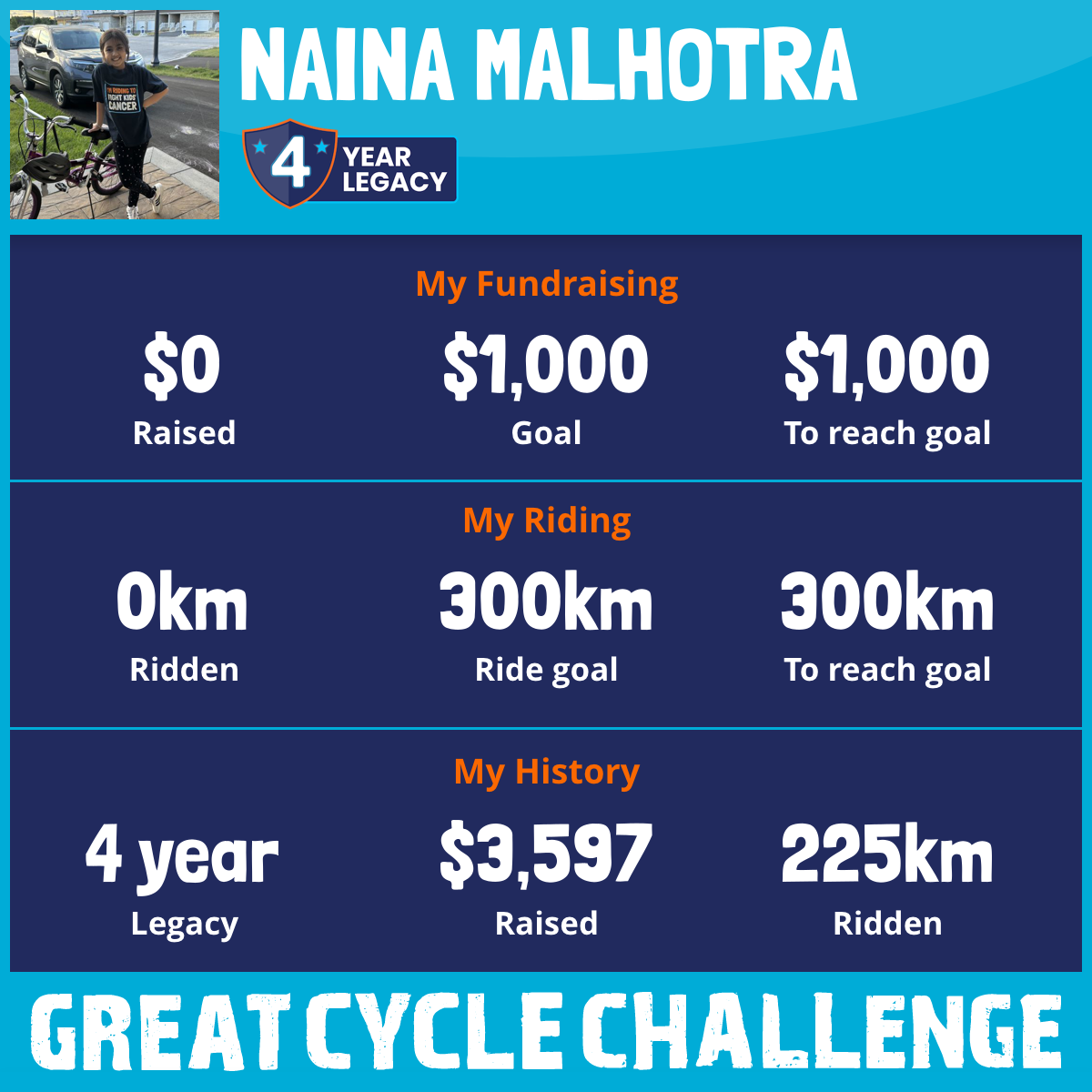 This August, I am taking part in the Great Cycle Challenge to fight kids' cancer!
