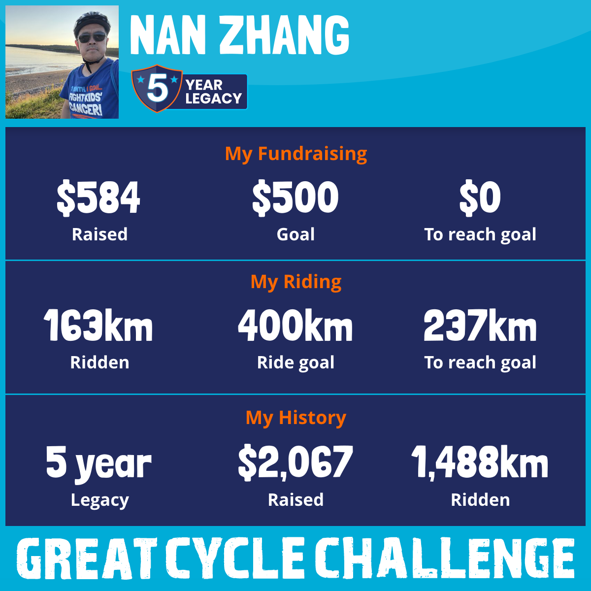 This will be my fifth year supporting this good cause, cycling and advocating for kids' cancer. Kids should be living their lives, not fighting for it. Any donation amount is greatly appreciated. Please contribute now and support my effort to fight kids' cancer!