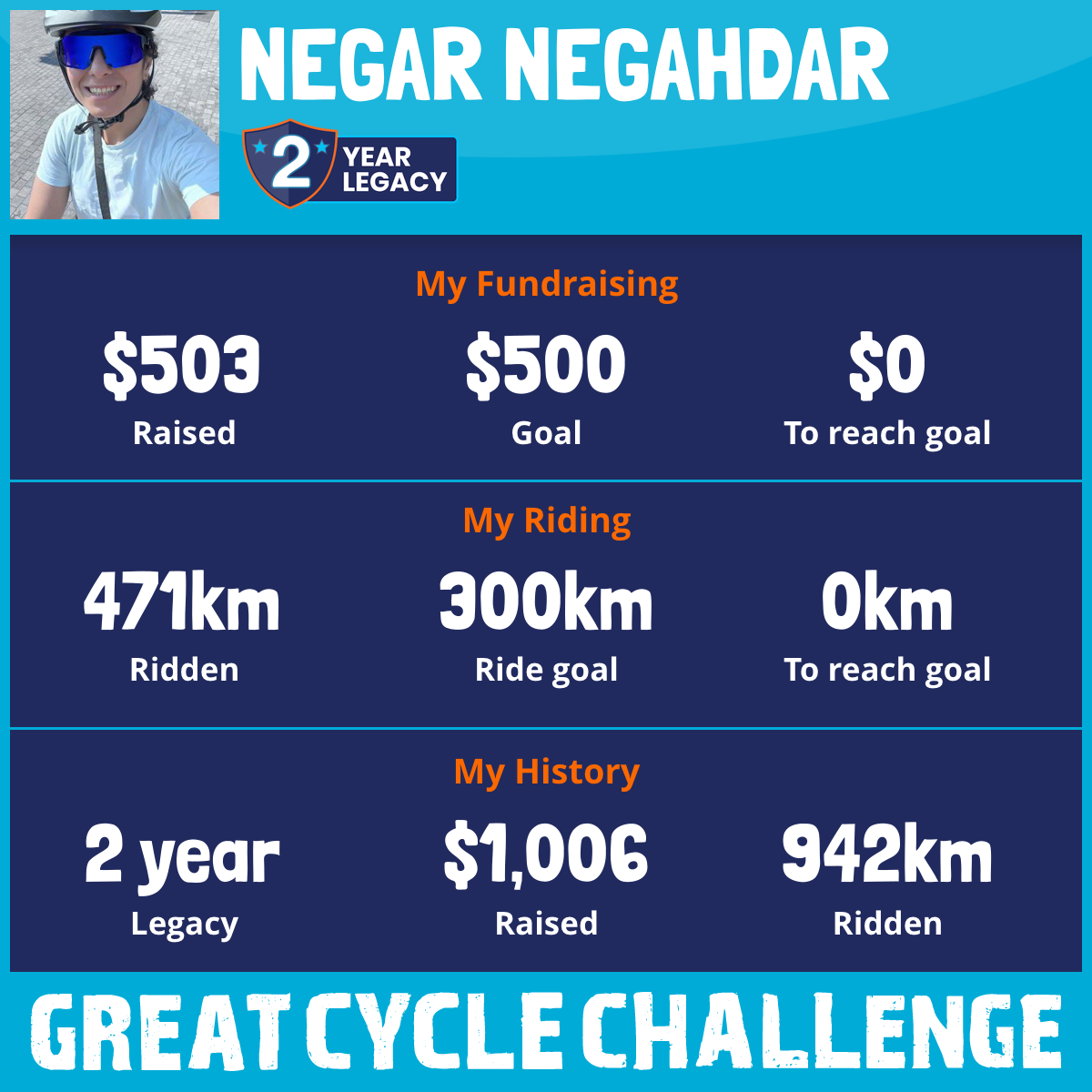 I am riding 200 km in memory of my aunty, Gloria. Please sponsor me and support my challenge to fight kids' cancer and save little lives.