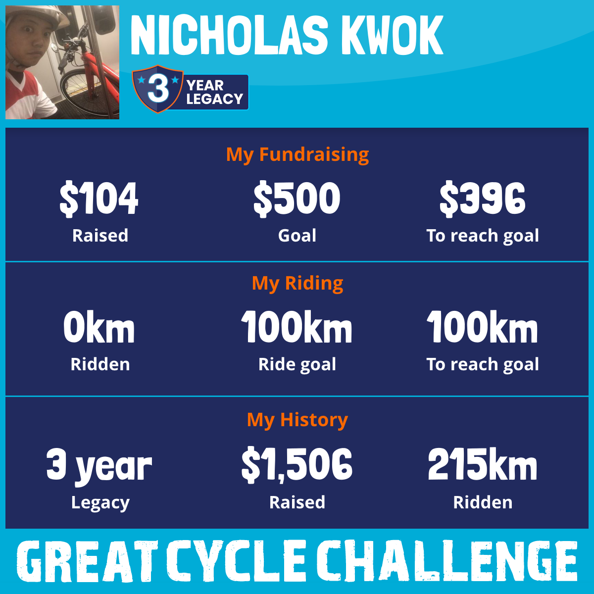 155 km Ridden$1,402 Raised2023