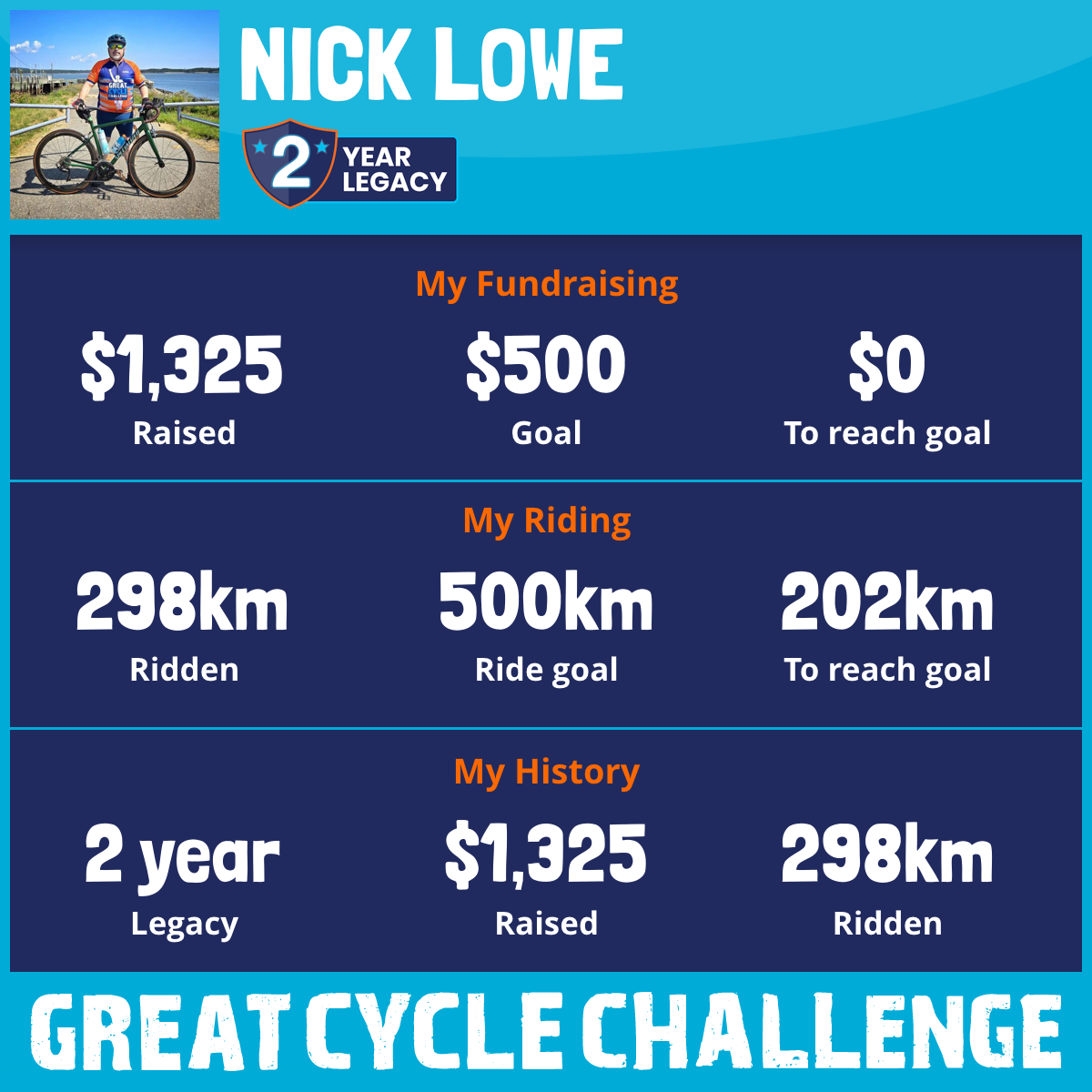 2,589 km Ridden$1,325 Raised2025