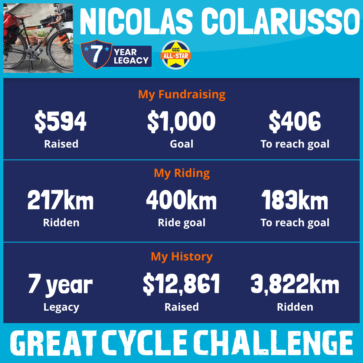 538 km Ridden$1,409 Raised2026