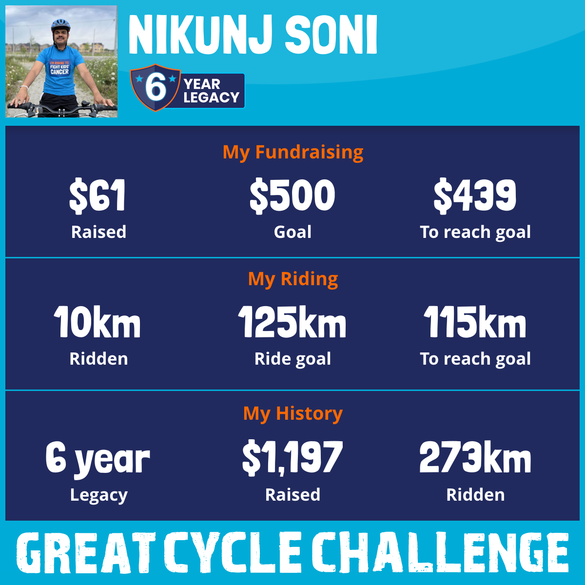 I am riding 125 km to fight kids' cancer and save little lives. Please sponsor me to support my challenge!