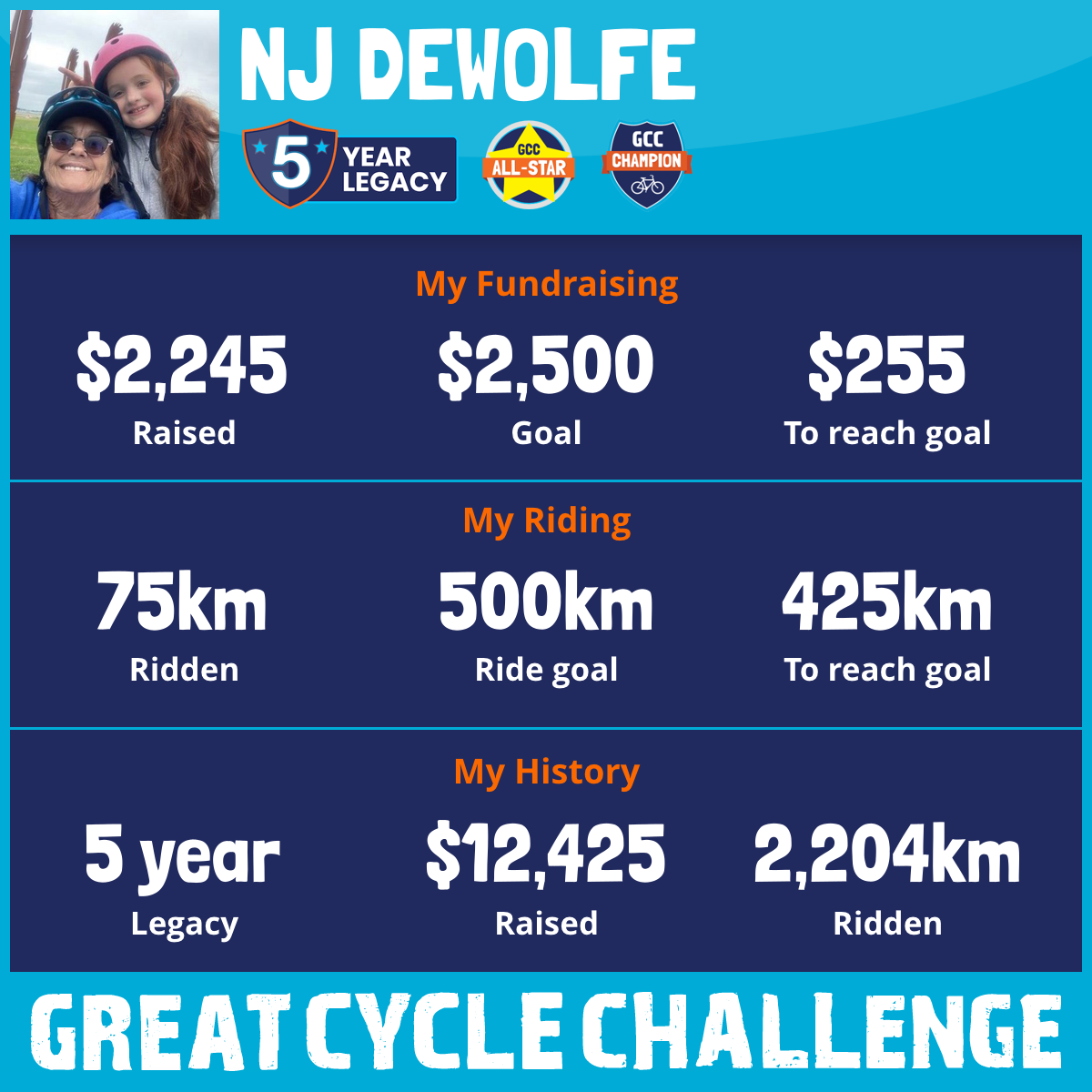 520 km Ridden$2,579 Raised2023