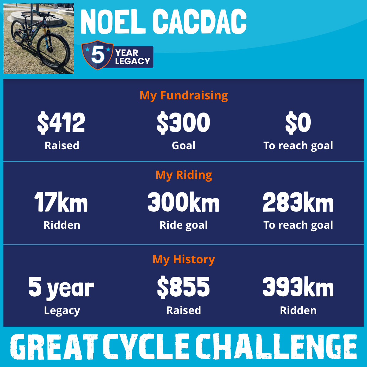 168 km Ridden$412 Raised2026