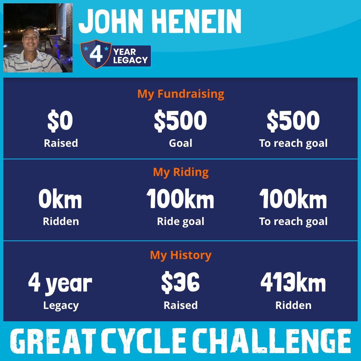 I've raised $0 My goal is $500 Donate Now