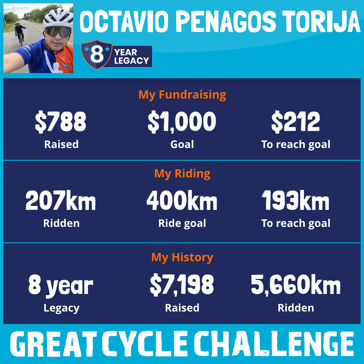 1,205 km Ridden$1,431 Raised2020