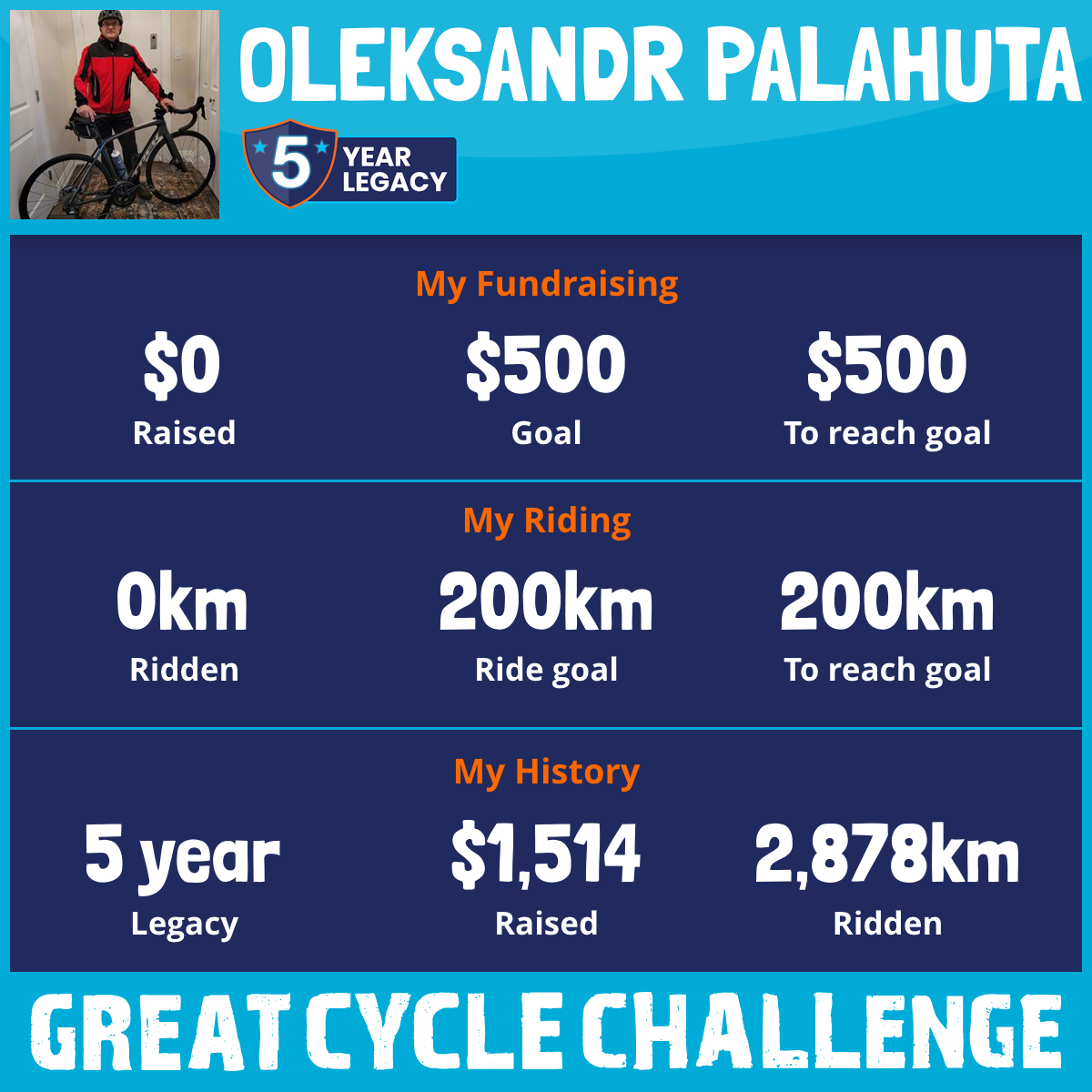 I am riding 200 km for In memory of Alex. Please sponsor me and support my challenge to fight kids' cancer and save little lives.