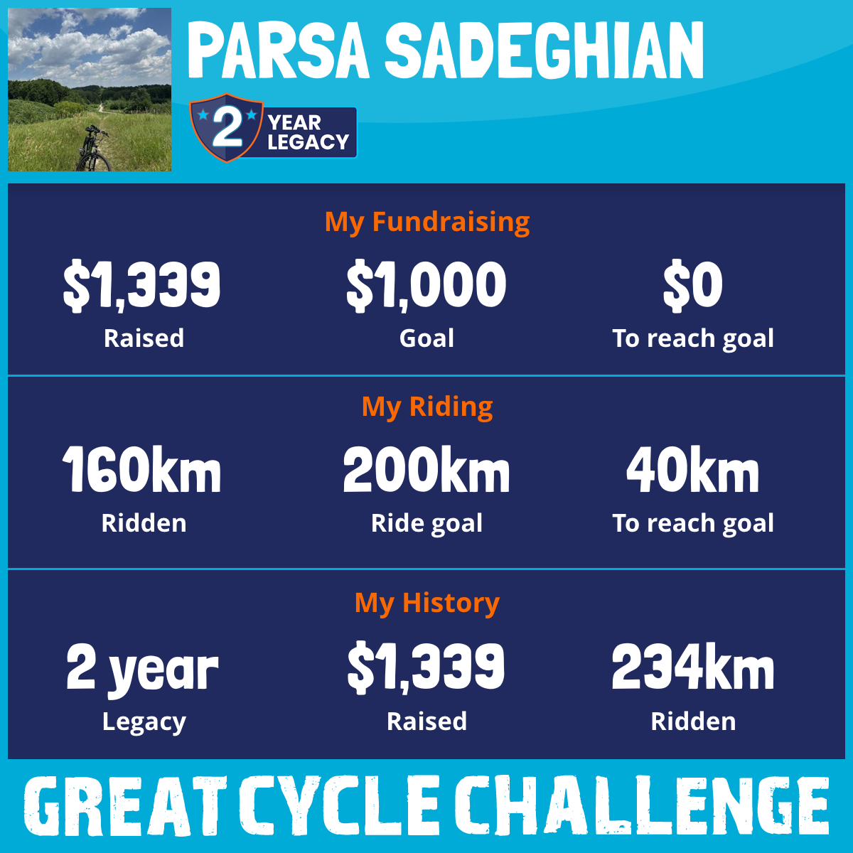 It is for this exact reason that I have decided to take part in the Great Cycle Challenge. Biking has been one of my favourite summer activities for my entire life, and I have spent countless kilometres on my bike over the years. This year, I hope to be able to use some of those kilometres to raise money for a cause that is important to me and many others.