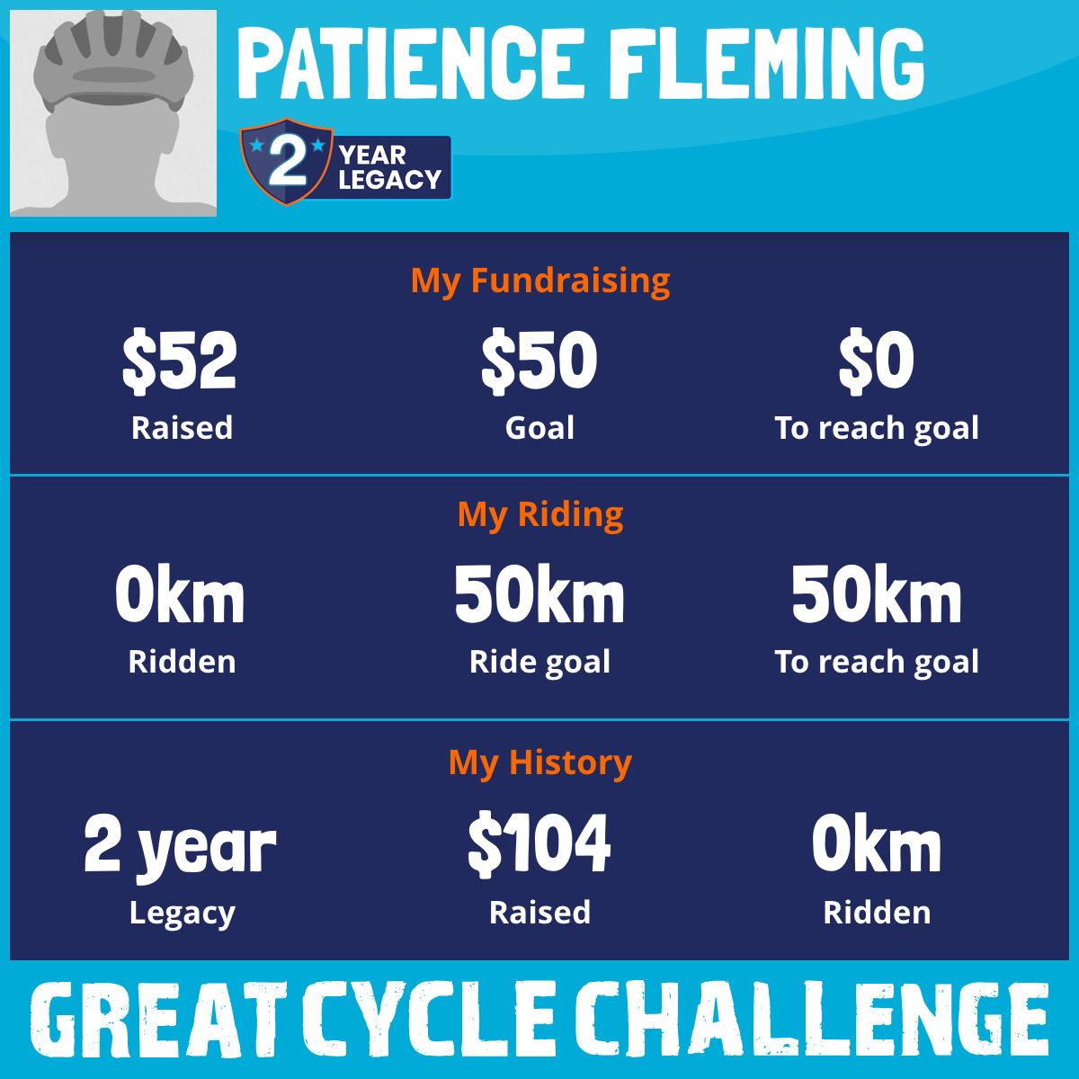 I am riding 50 km in memory of Doreen Francis and my great grandfather. Please sponsor me and support my challenge to fight kids' cancer and save little lives.