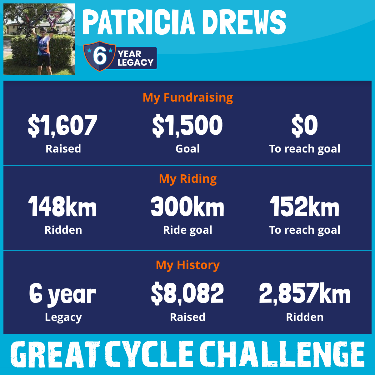 609 km Ridden$1,716 Raised2020