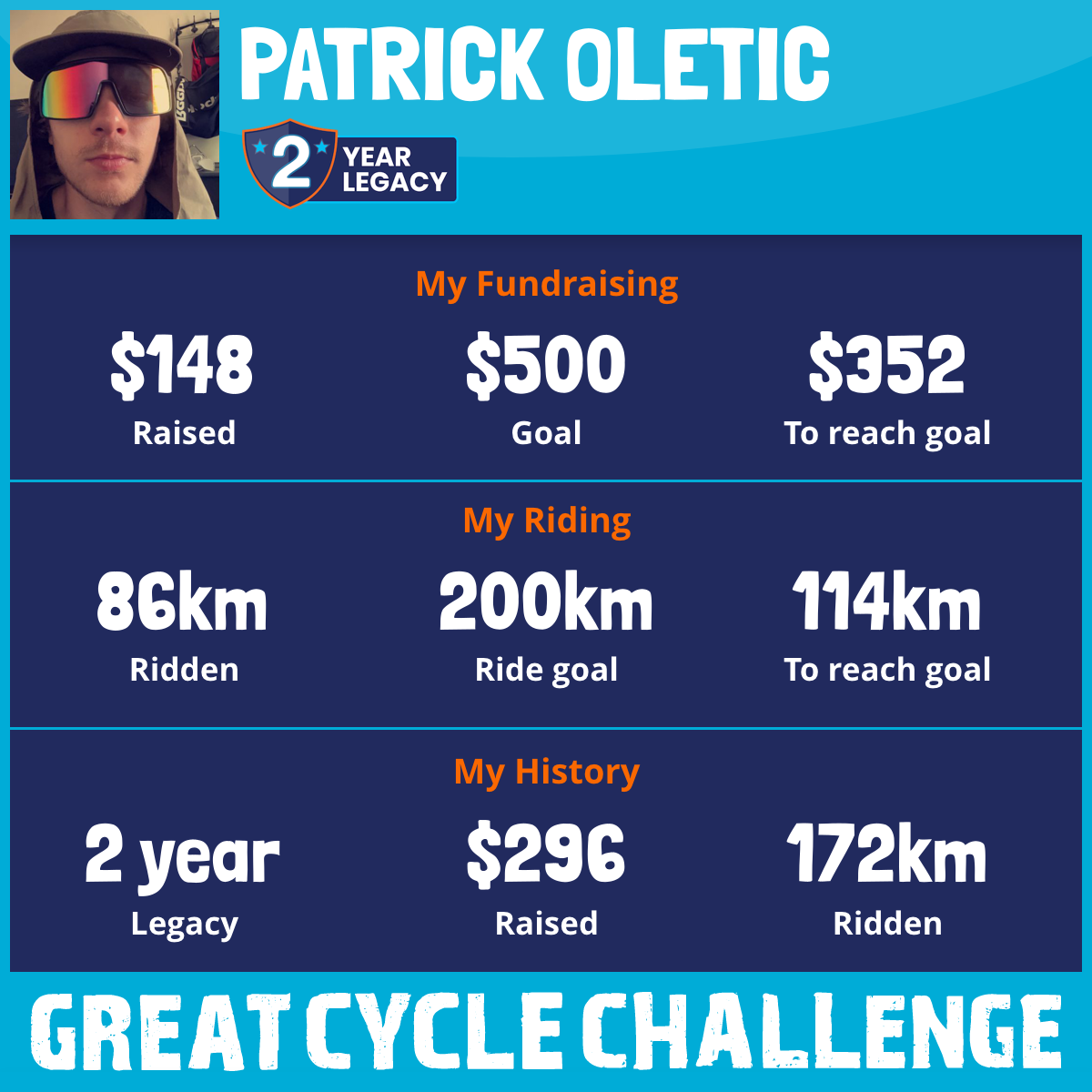 86 km Ridden$148 Raised2026