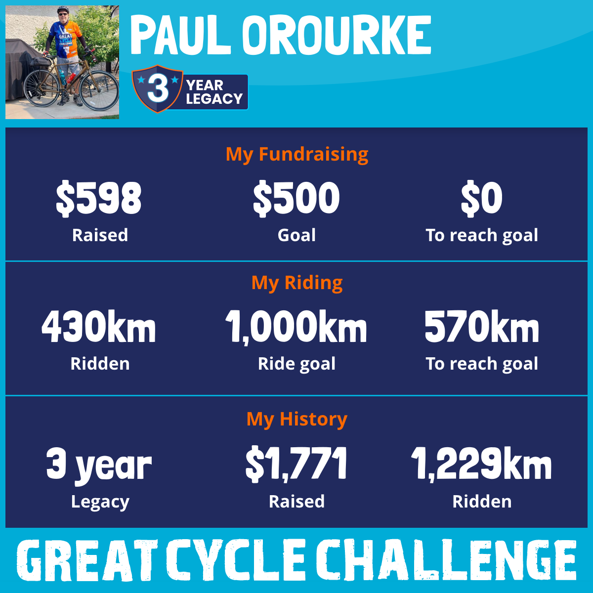 This August, I will be taking part in the Great Cycle Challenge to fight kids' cancer for the 3rd year in a row!