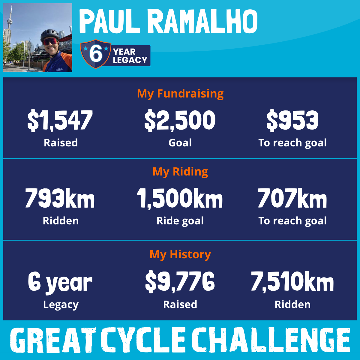 This August, I am taking part in the Great Cycle Challenge to fight kids cancer! My goal is to raise $2500 and ride at least 1500km to help support the fight against kids cancer.