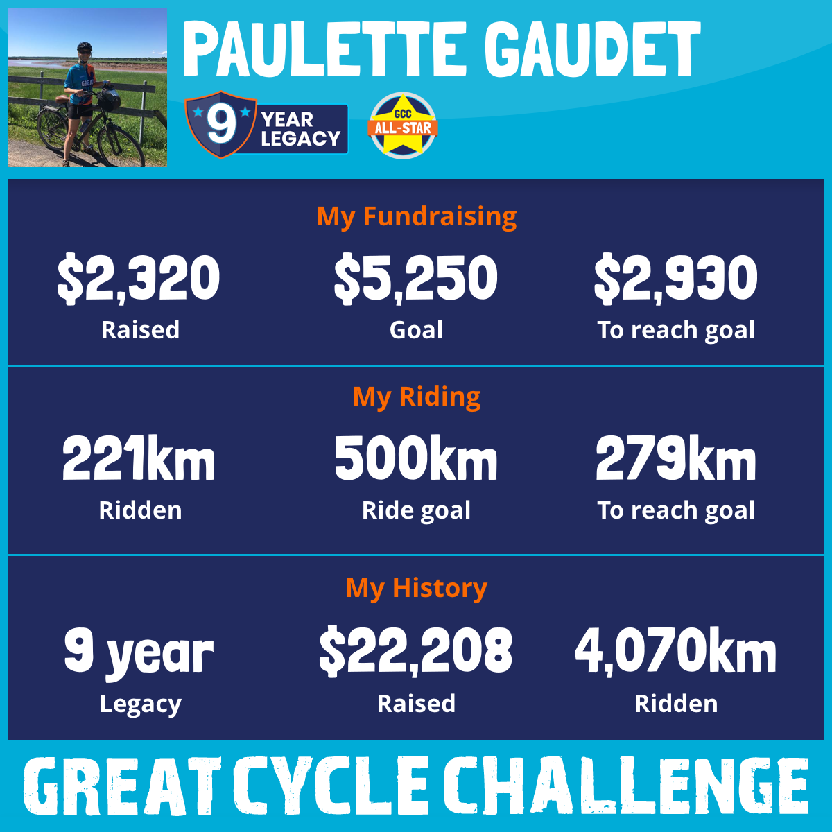 520 km Ridden$4,712 Raised2023
