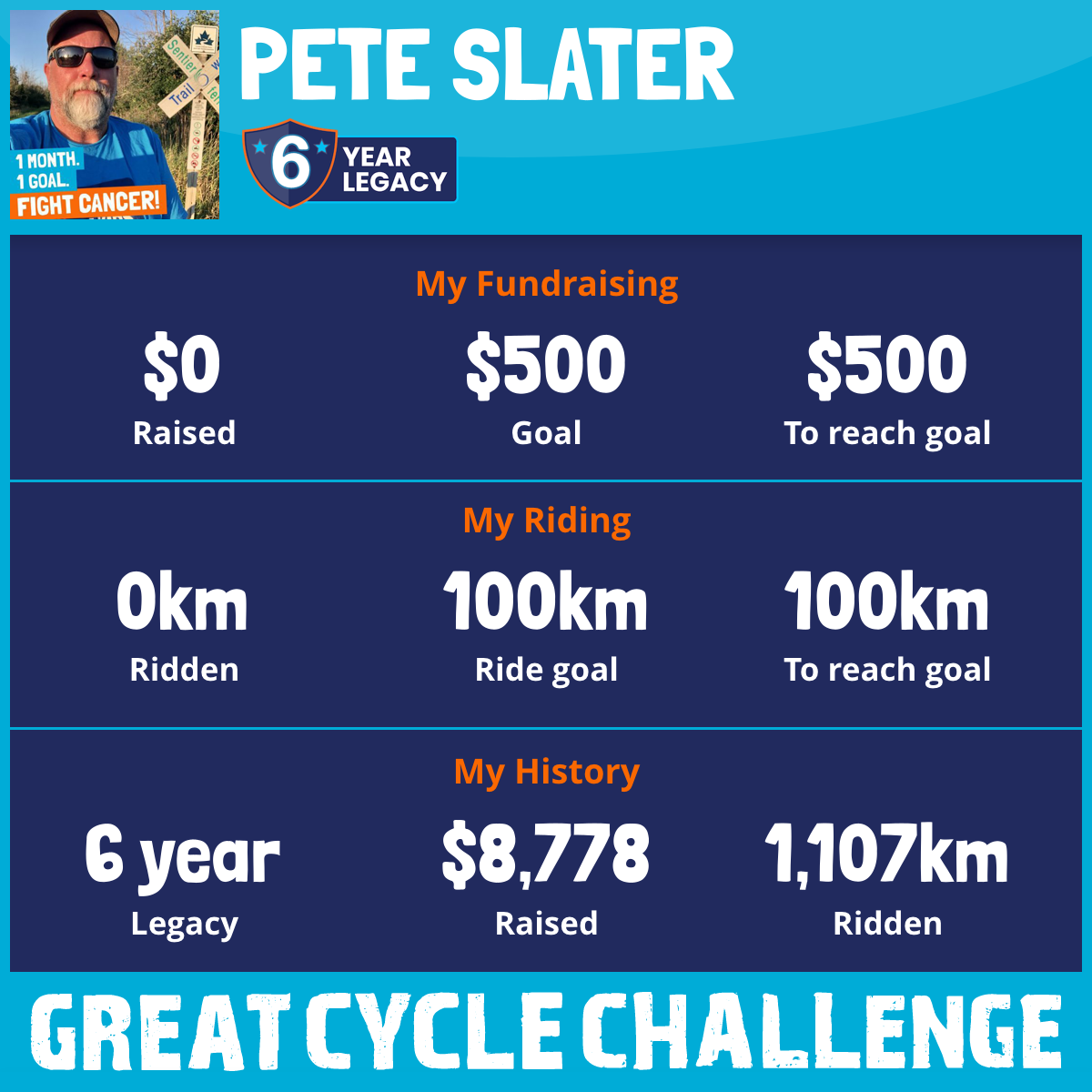 Once again this August 2023, I am taking part in the Great Cycle Challenge to fight kids' cancer.