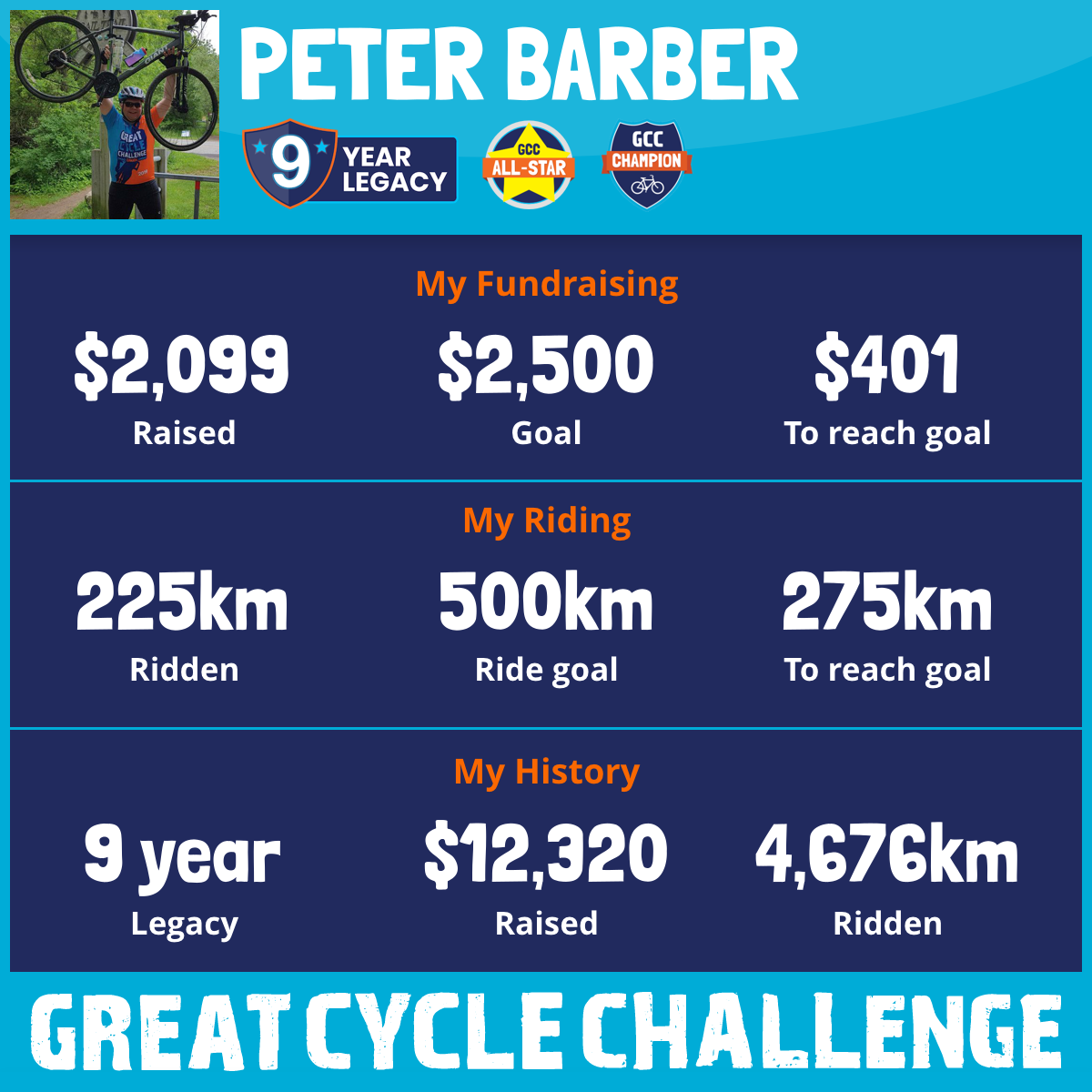 437 km Ridden$100 Raised2018