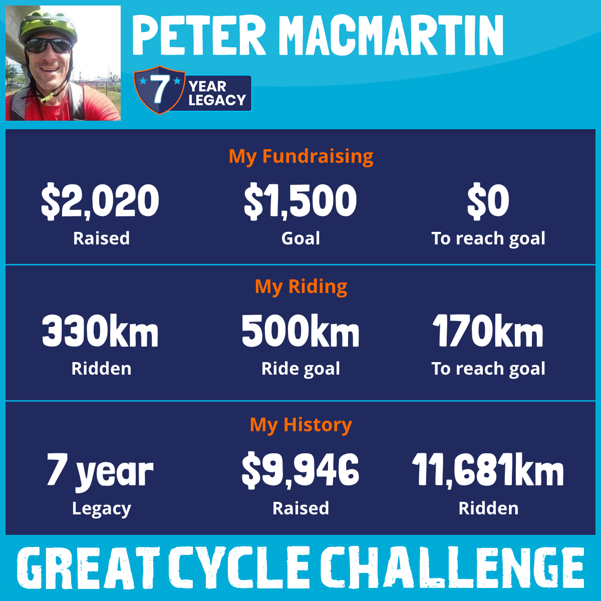 3,922 km Ridden$1,765 Raised2019