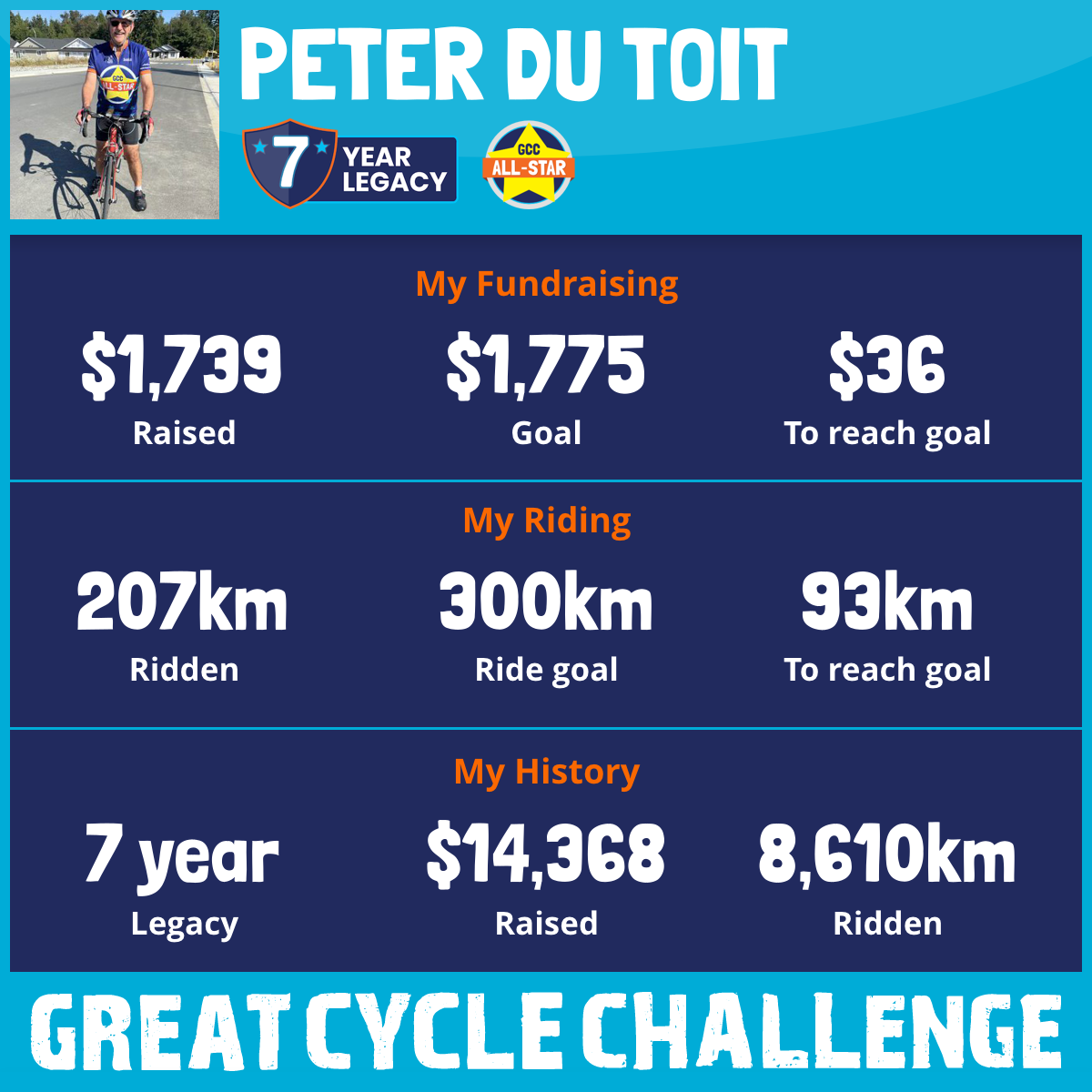 This August, I am again taking part in the Great Cycle Challenge to fight kids' cancer!