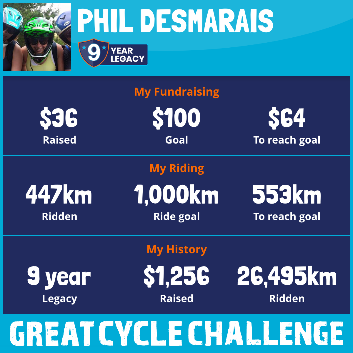 2,922 km Ridden$140 Raised2026