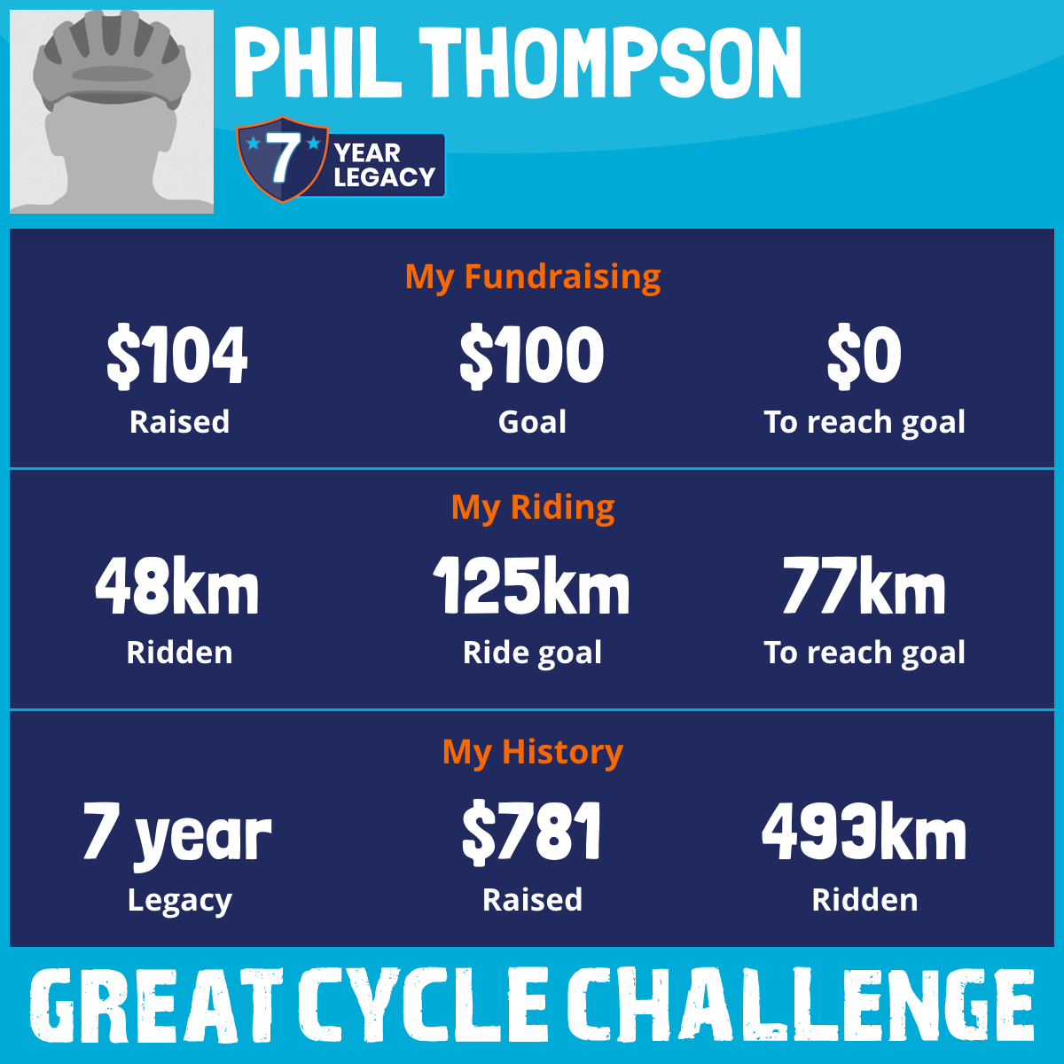 I am riding 125 km for Mike & Dawn Thompson and Phyl Staples. Please sponsor me and support my challenge to fight kids' cancer and save little lives.