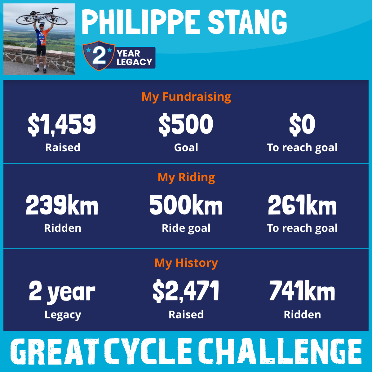 1,624 km Ridden$1,459 Raised2026
