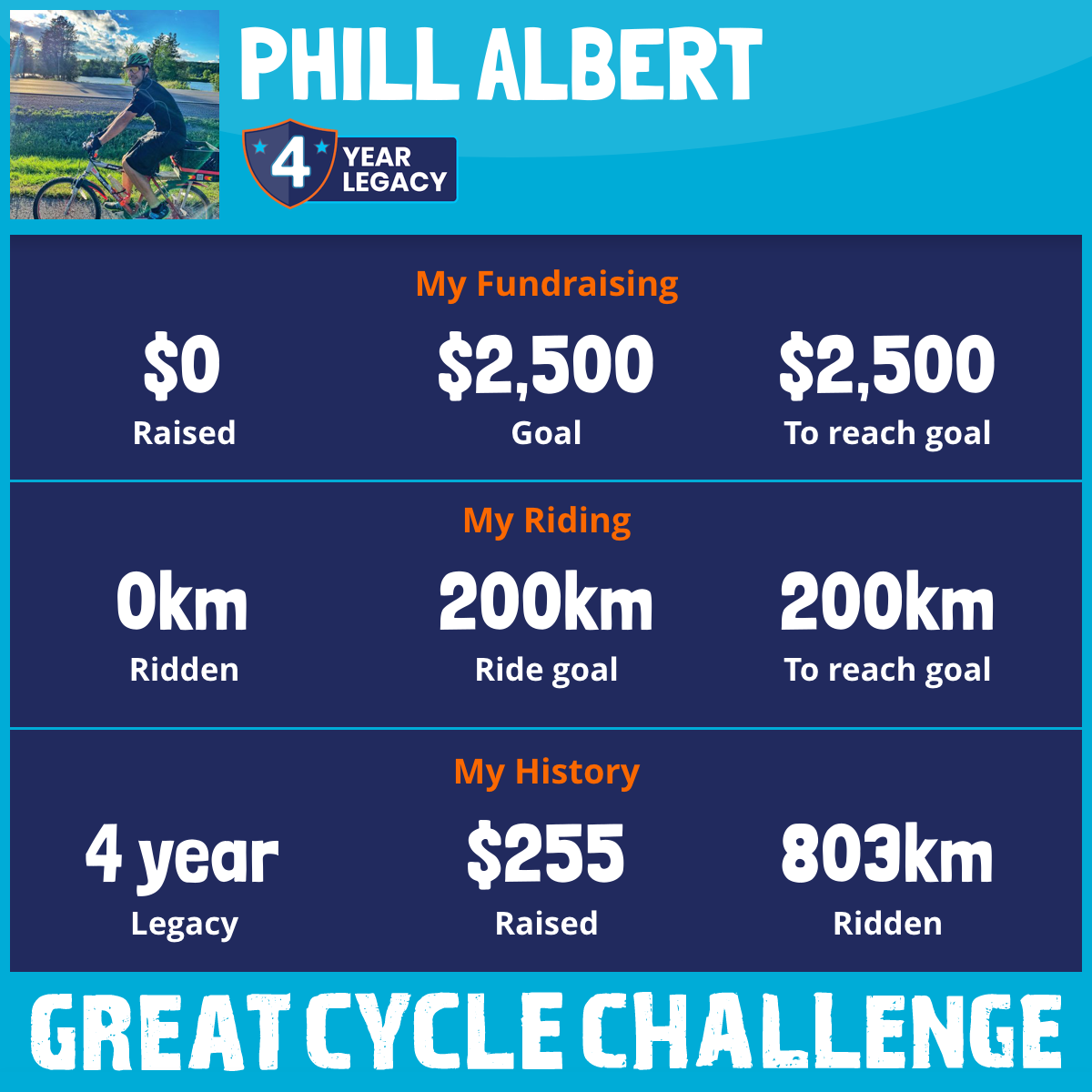 I lost my Dad to cancer 6 1/2 years ago and ever since nothing has been the same, so imagining what these brave little people and their families have to endure just makes me want to do something help make their journey a little bit better or easier so I'm cycling all of August to show my support and to raise awareness and money to help support the SickKids Foundation so they can help them as then need, also it allows them to continue their work in developing treatments and finding a cure for childhood cancer. Please help support me by making a donation or keep sharing and spreading the word of my Challenge, either way will help to give these kids the brighter futures they deserve.