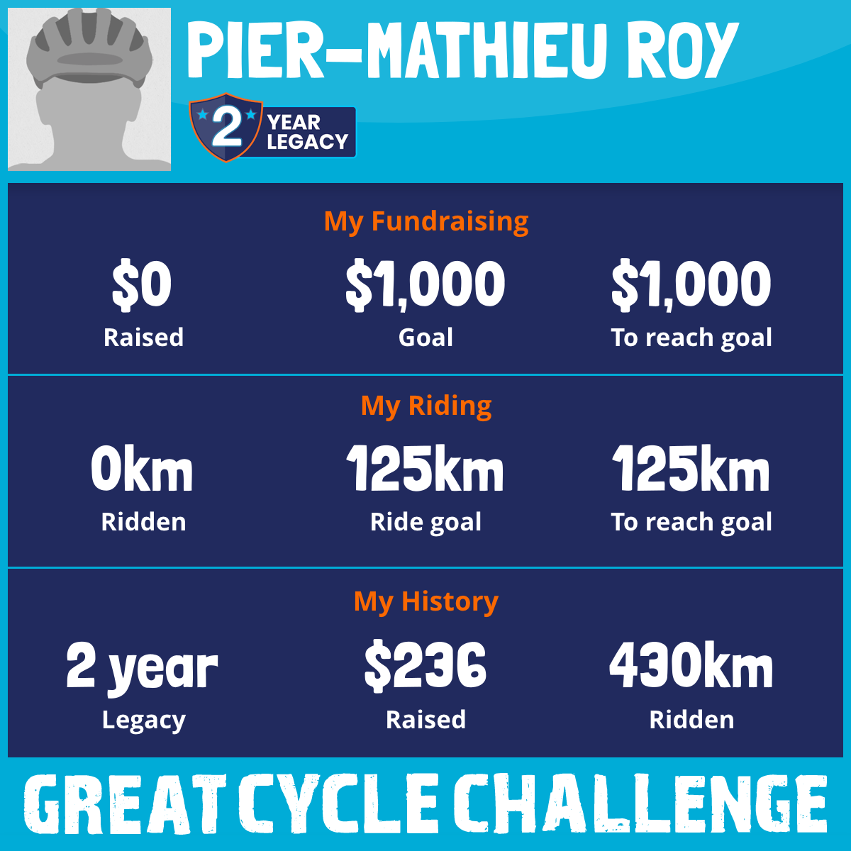 430 km Ridden$236 Raised2020