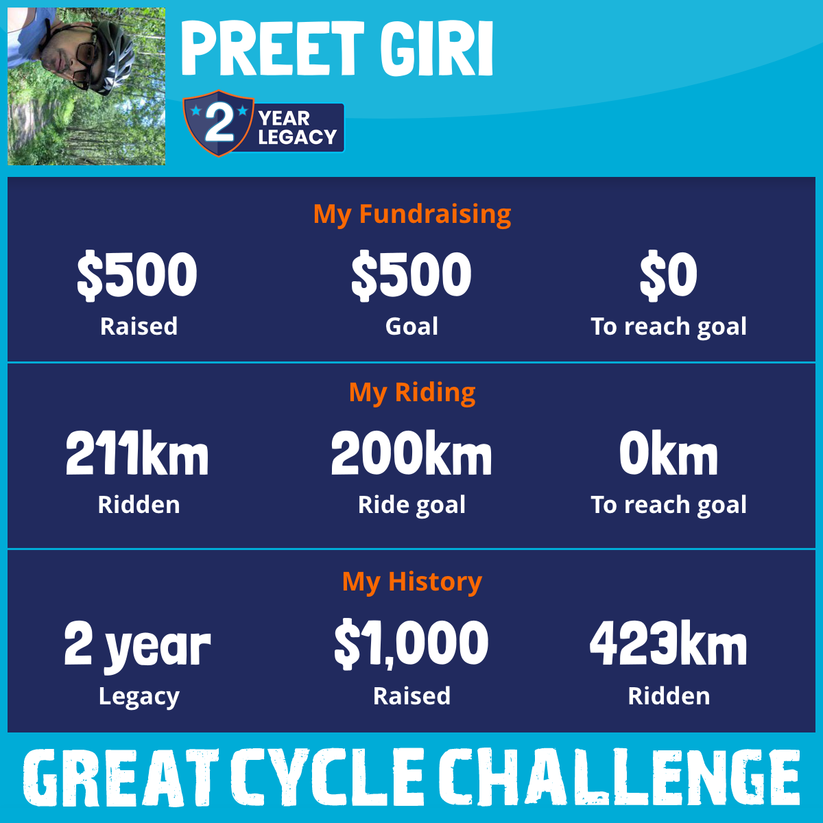 211 km Ridden$500 Raised2026
