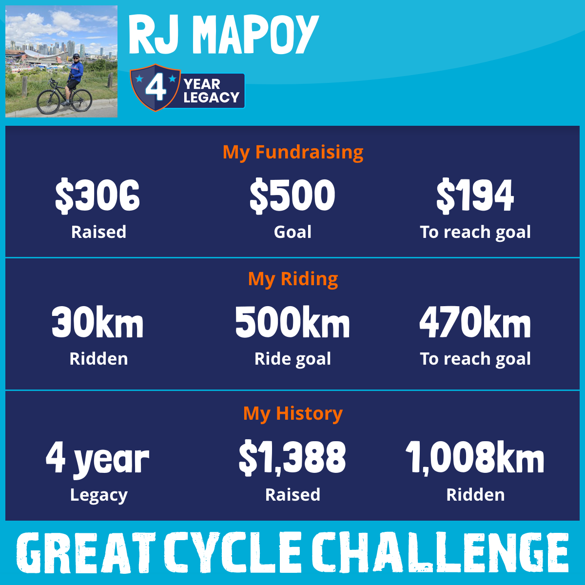 855 km Ridden$779 Raised2022