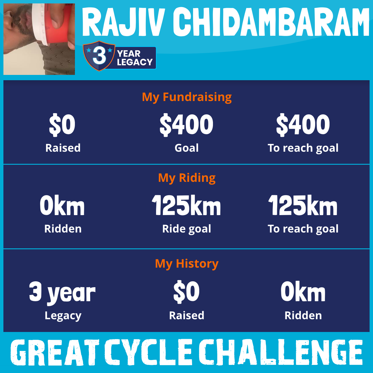 I am riding 125 km for Raj. Please sponsor me and support my challenge to fight kids' cancer and save little lives.