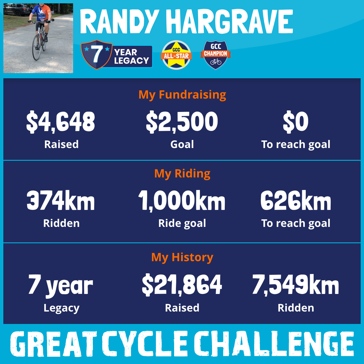 1,205 km Ridden$3,347 Raised2022