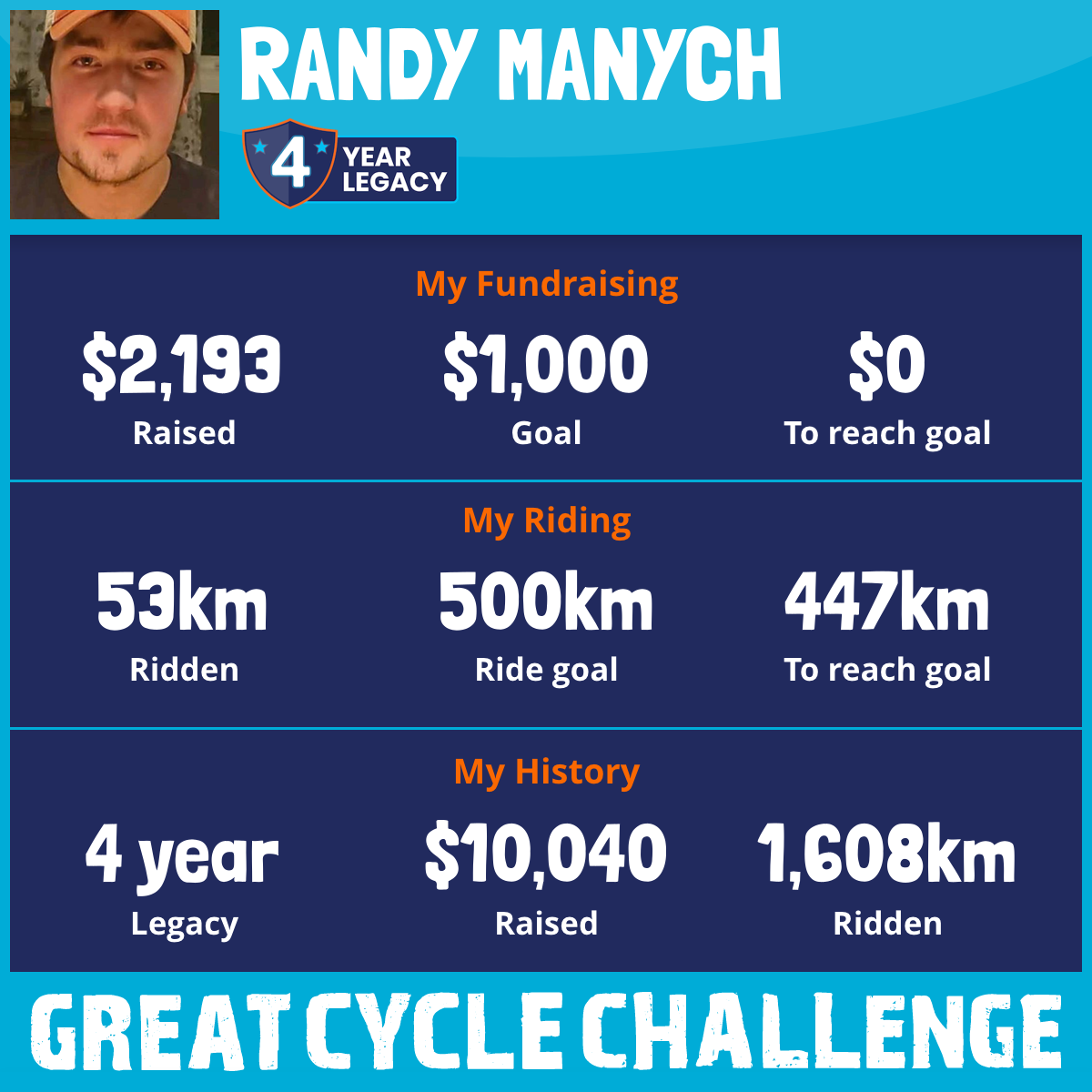 I am riding 500 km in memory of RILEY MANYCH - No parent should lose a child. Please sponsor me and support my challenge to fight kids' cancer and save little lives.