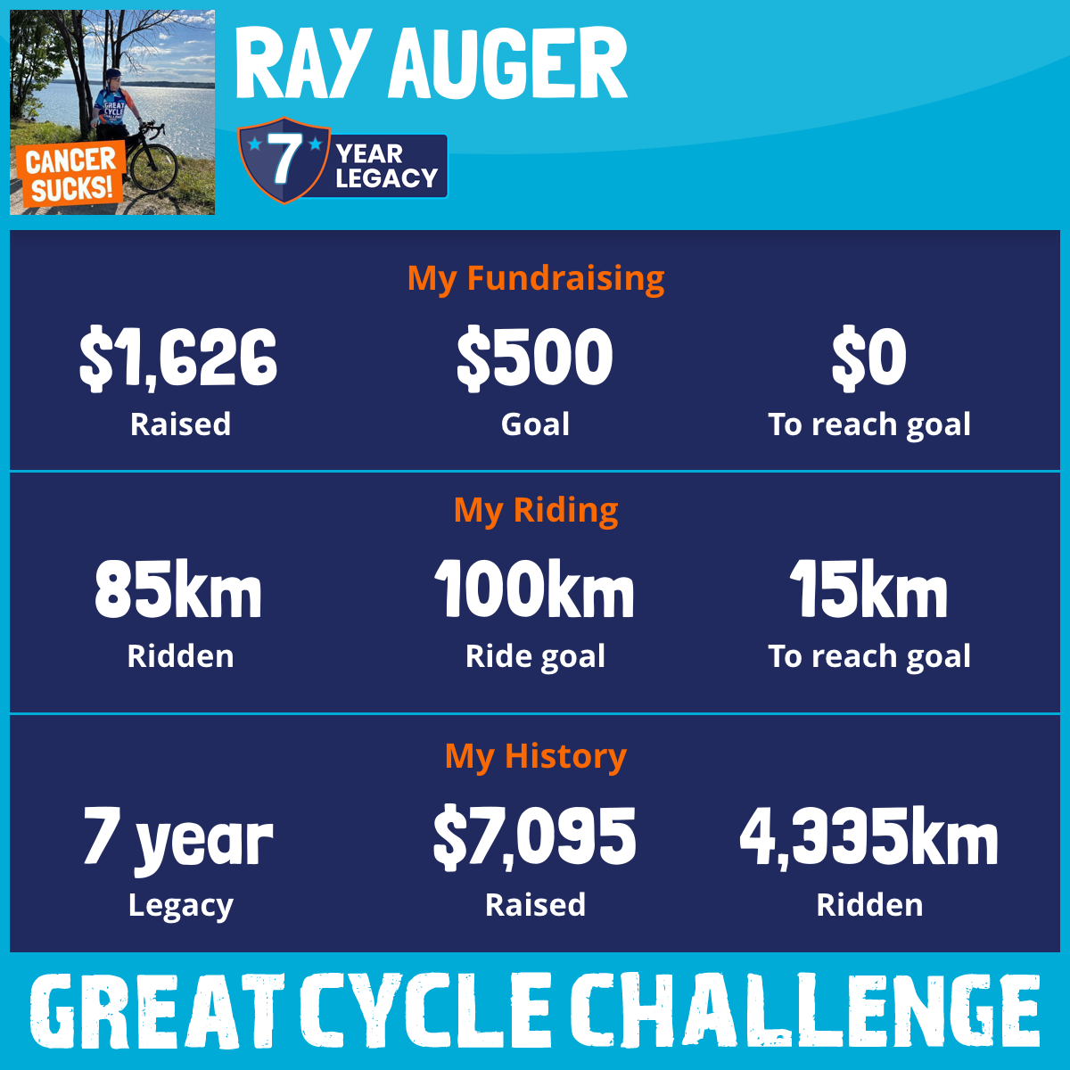805 km Ridden$1,118 Raised2024