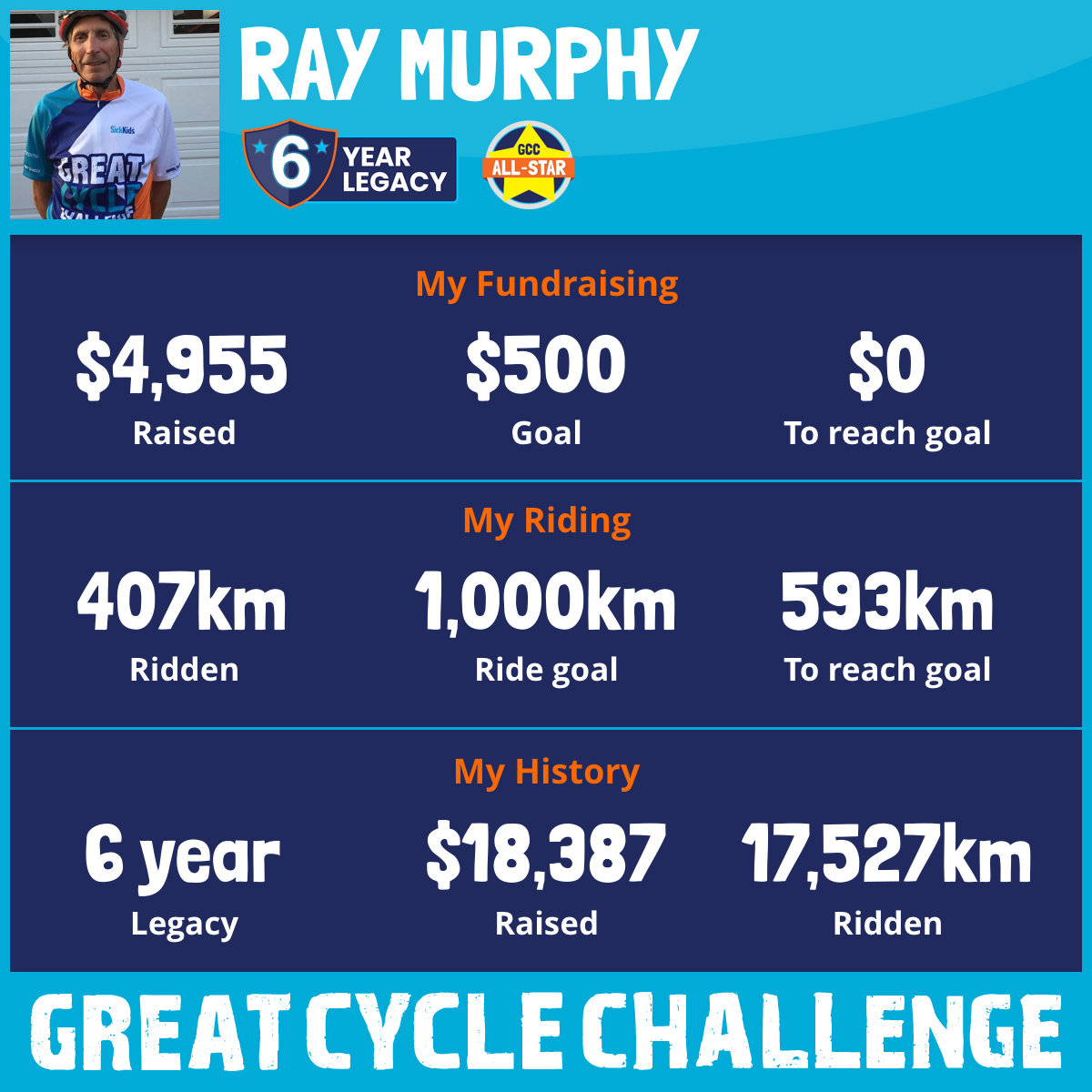 I am riding 1,000 km for all of the kids at Sick Kids Hospital. Please sponsor me and support my challenge to fight kids' cancer and save little lives.