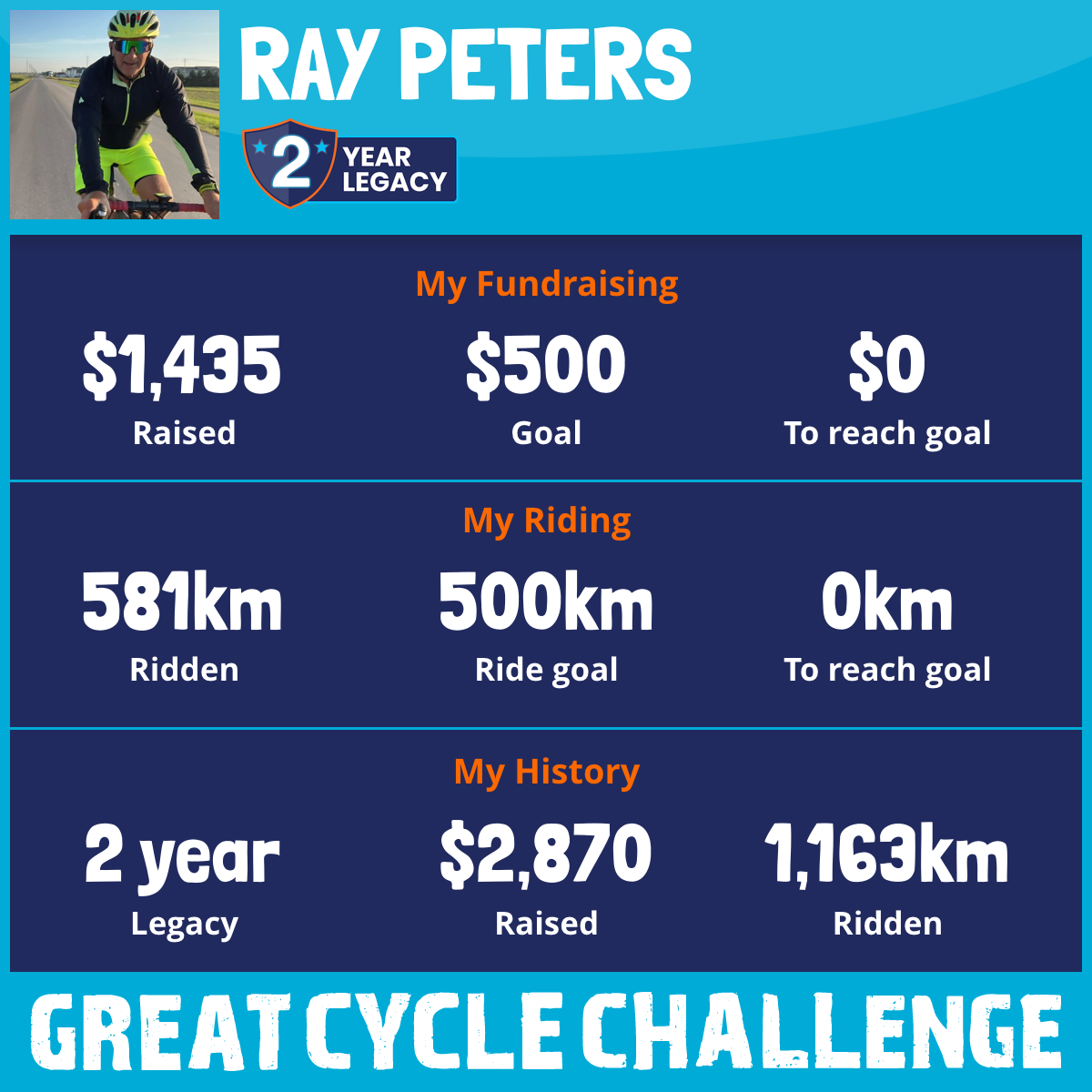 581 km Ridden$1,435 Raised2026