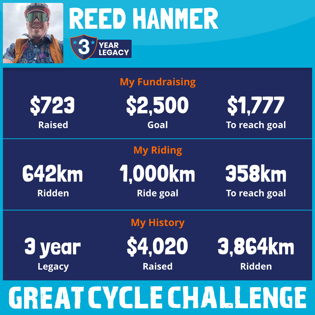 2,848 km Ridden$832 Raised2026