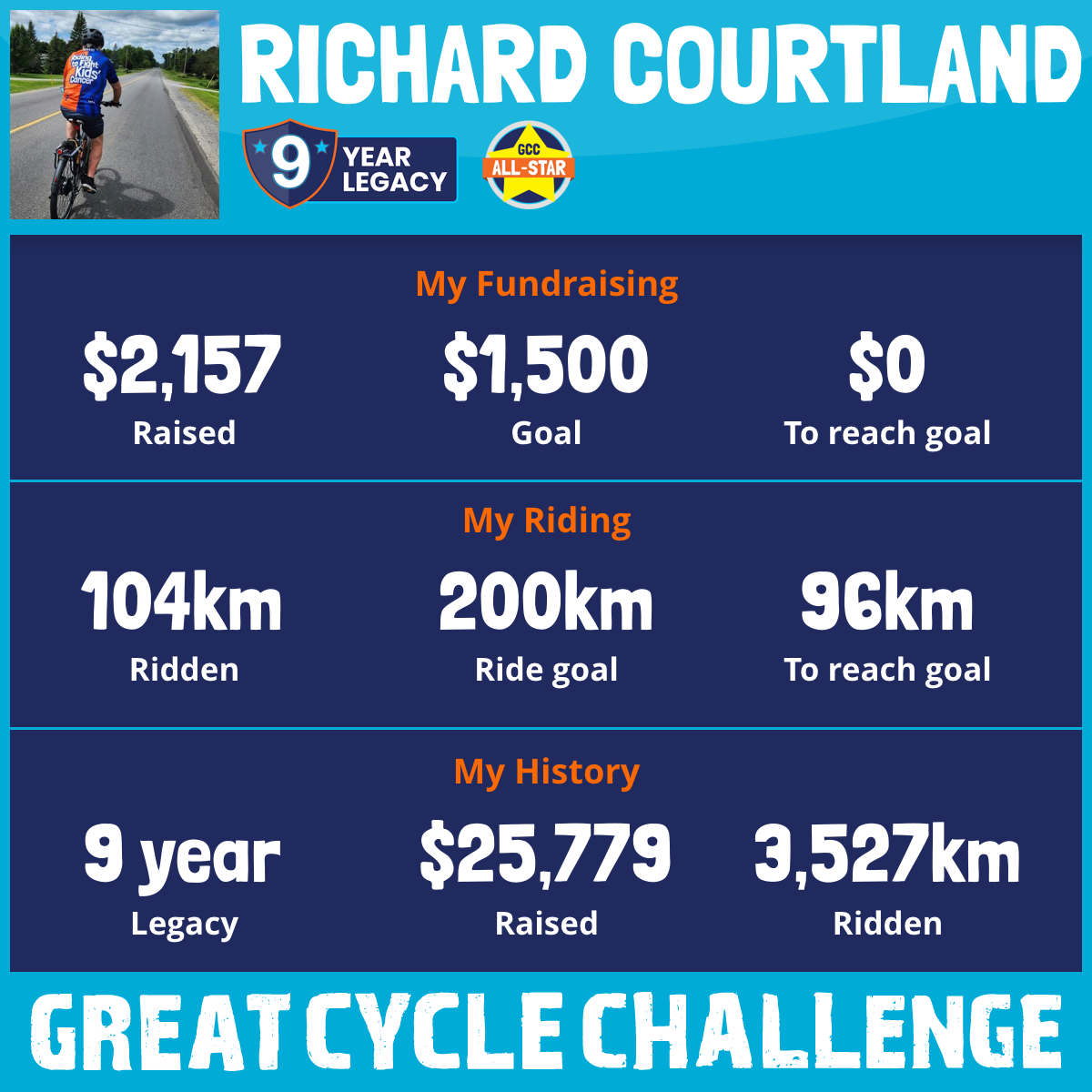 216 km Ridden$2,504 Raised2026