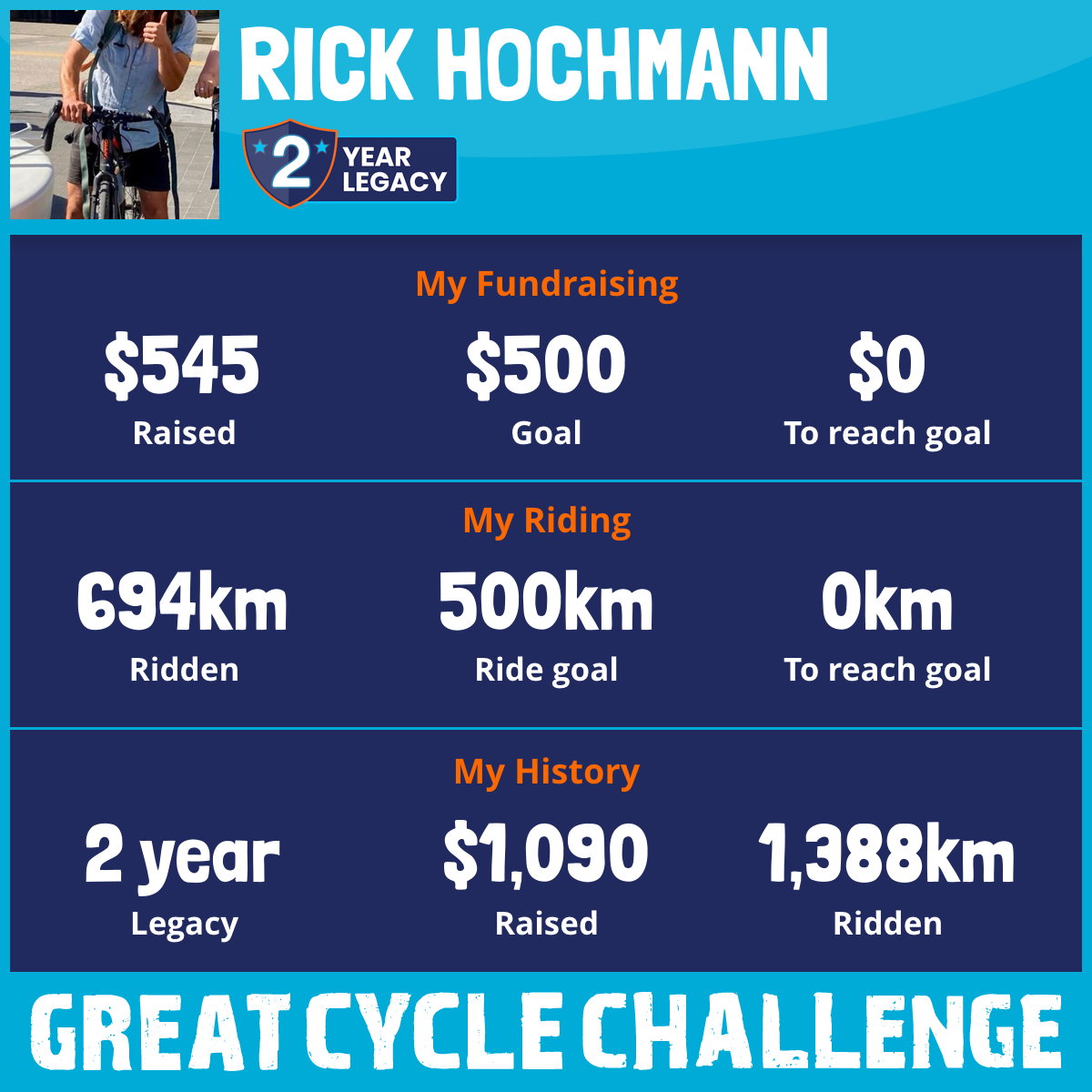 694 km Ridden$545 Raised2025