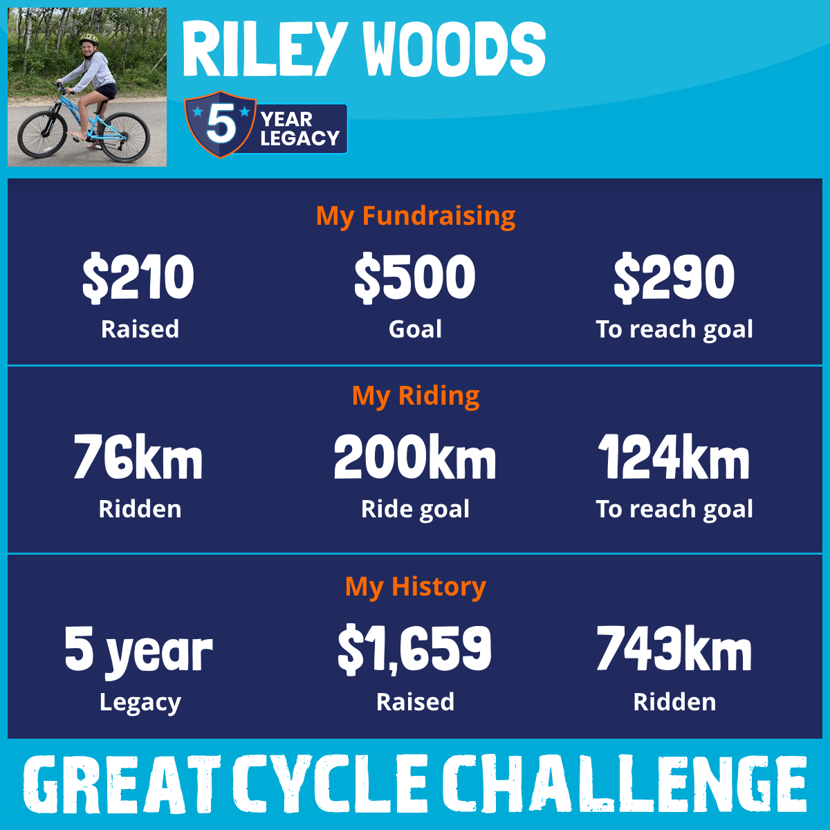 190 km Ridden$429 Raised2023