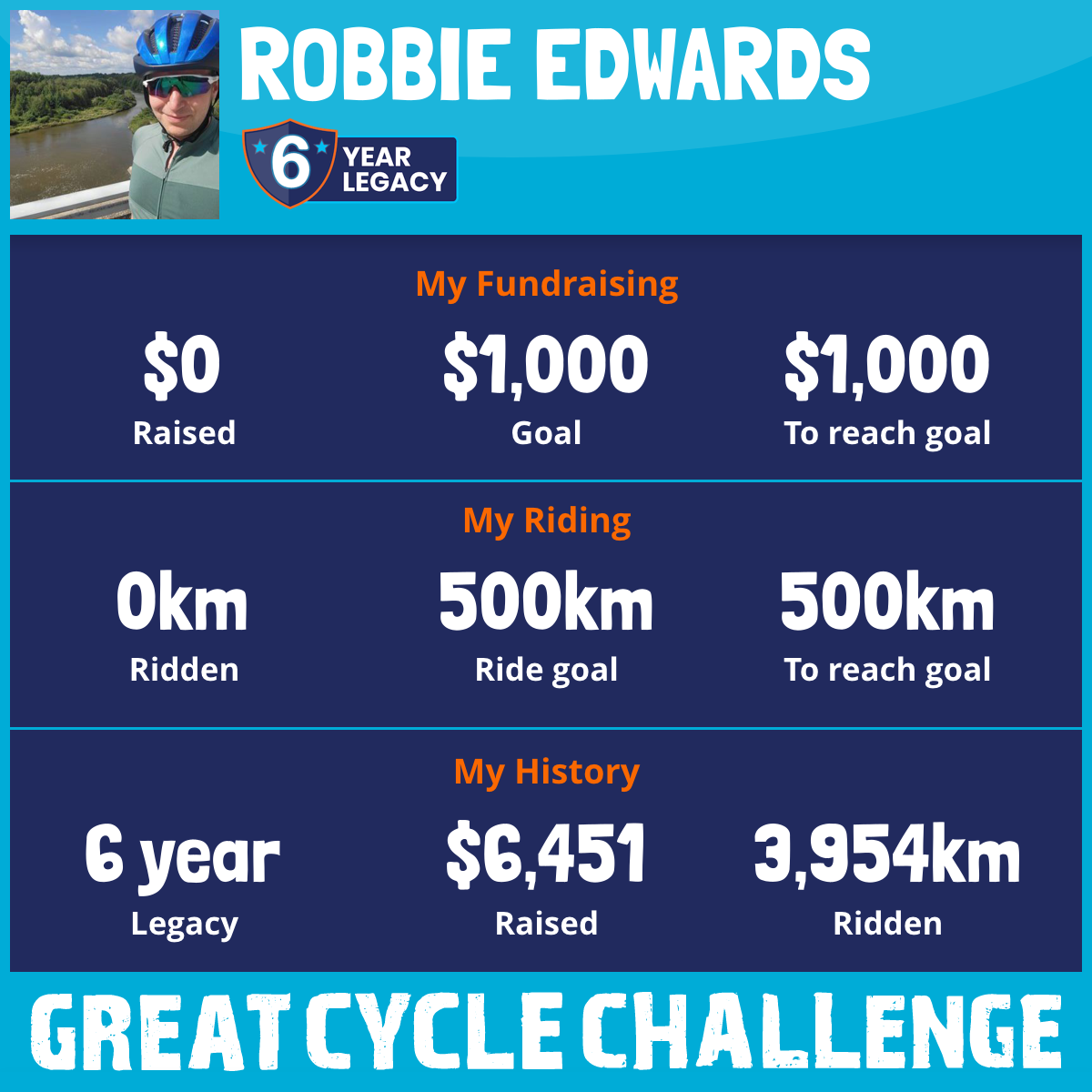 Back in the 5th year. Although the 1000km slog was fun last year, this year I am hoping to approach the great cycle challenge differently. I will donate to this campaign based on how many friends and colleagues I can get out on the road with and how far we we cycle.