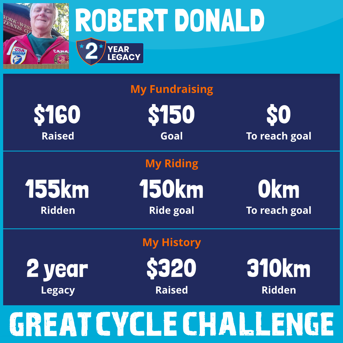 155 km Ridden$160 Raised2025