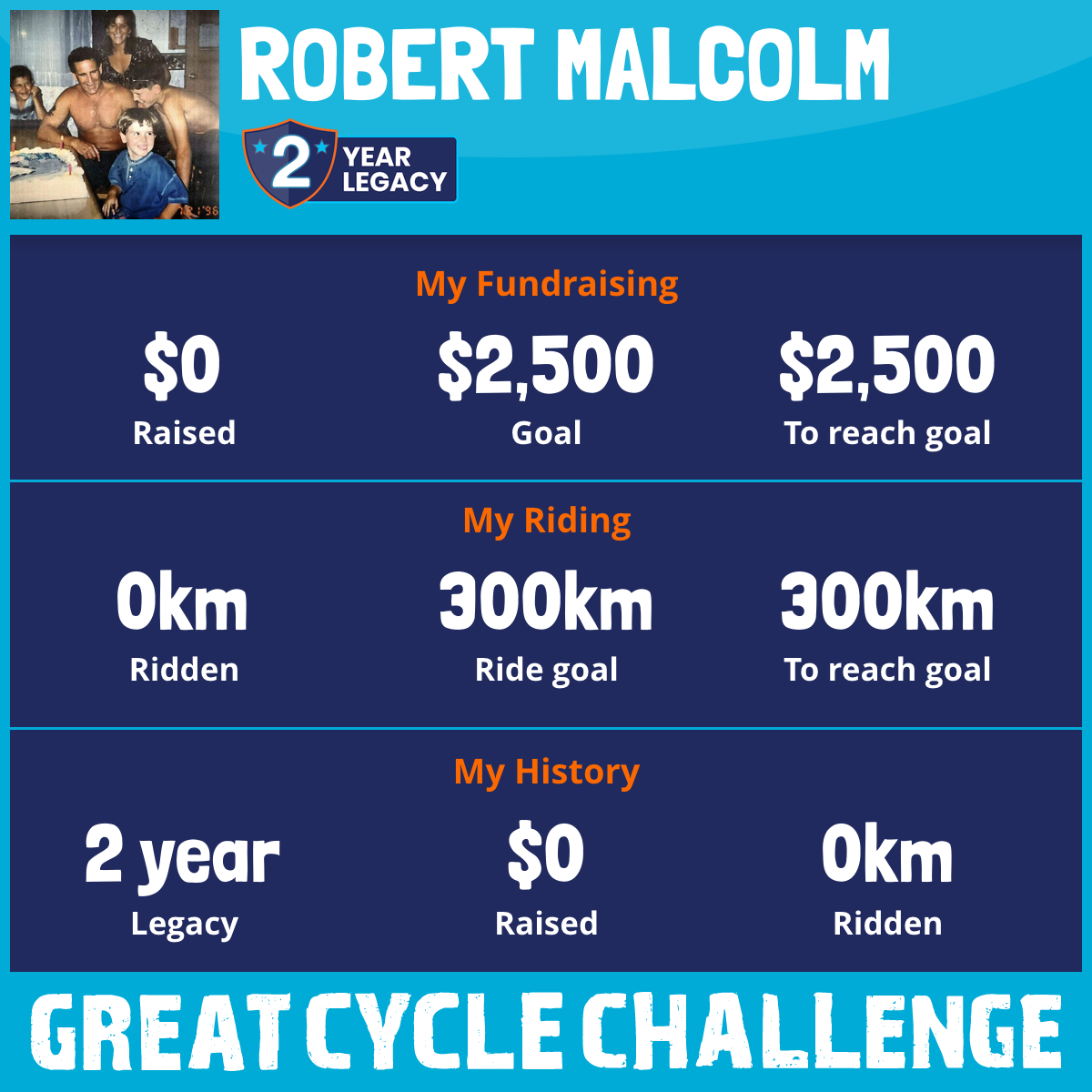 I am riding 300 km for my dad, Brodie. Please sponsor me and support my challenge to fight kids' cancer and save little lives.