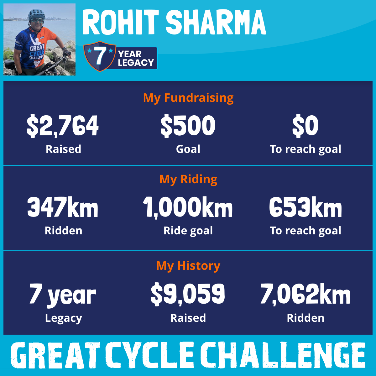 1,513 km Ridden$3,022 Raised2026